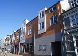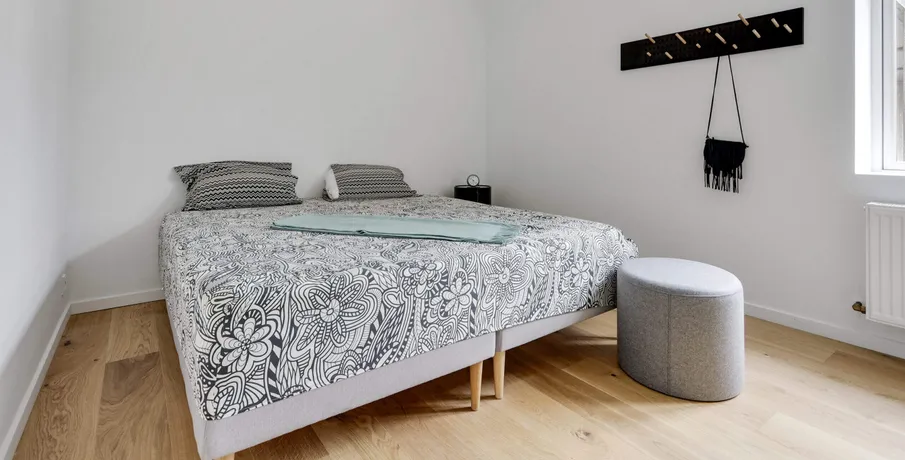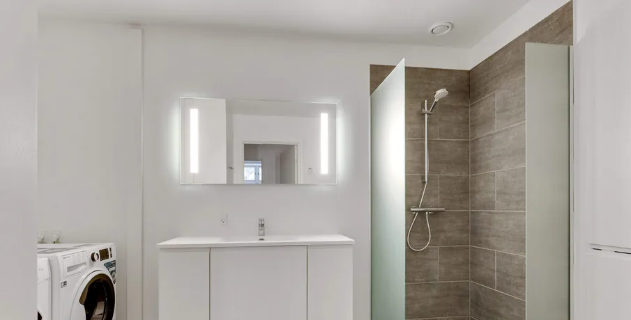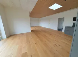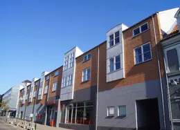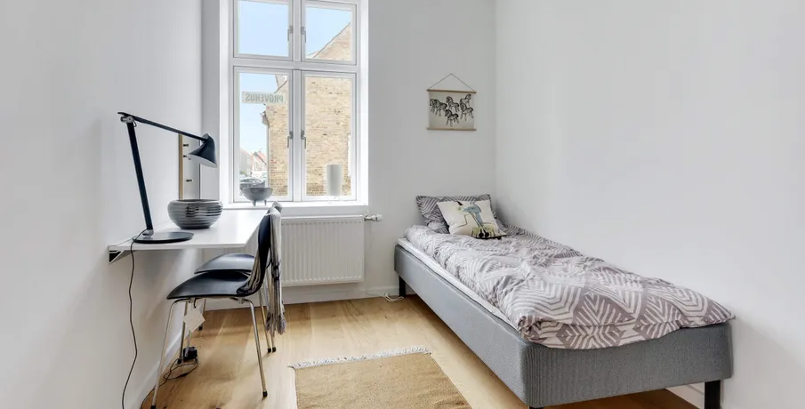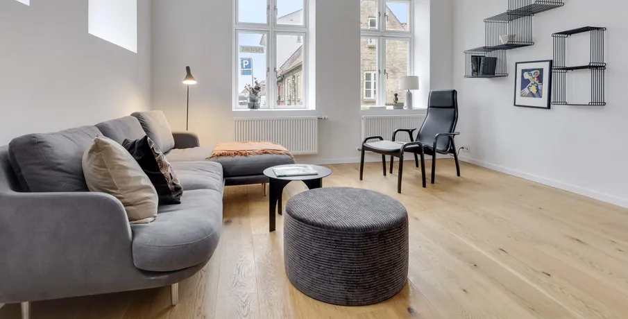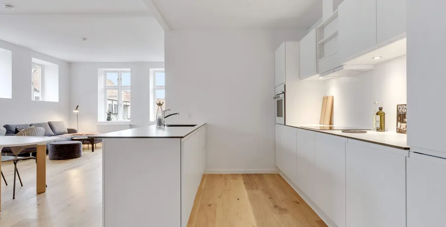 . 3-værelses nyindrettet lejlighed på 104 kvm. til leje nu:. Her skabes moderne lejligheder og funktionelle boliger – de fleste med niveaufri adgang i ét plan – hvor disponering og layout er tiltænkt for at skabe mest muligt opholdsareal og leverum.. I lejlighederne er der flotte lakerede egetræsgulve. Køkkener og badeværelser er monteret med kvalitetsmiljøer fra JKE design. Bl.a. er der skydelåger på alle sammenhængende skabe, hvidevarer er i høj kvalitet, der er væghængte toiletter på badeværelserne og meget mere.. Den smukke ejendom, som igennem mange år har huset Skanderborg Rådhus, danner rammen om projektet. Gennem en nænsom renovering og ombygning skabes 20 attraktive boliger placeret centralt i Skanderborg. Boligerne henvender sig til alle, som ønsker at bo midt i centrum med let adgang til butikker, gåafstand til apotek, læger samt byens restauranter og kulturelle tilbud.. Ejendommen, som oprindelig husede den gamle byskole i Skanderborg, er bygget i 1895, og er løbende blevet udbygget og renoveret, og i 1920 blev ejendommen taget i brug som Skanderborg Rådhus.. Placeringen i den gamle del af Skanderborg, i et fantastisk område, tæt på søen, tæt på skoven og midt i byens faciliteter, gør placeringen unik. Fra hoveddøren går man direkte ud i den gamle bydel, med små hyggelige huse og en fantastisk stemning − i Skanderborg bliver dette ikke bedre.. Nabo til ejendommen er Skanderborgs gamle politistation, en af de smukkeste ejendomme i Skanderborg, der nu er omdannet til et spændende og kreativt kontormiljø.. I 2018 solgte Skanderborg Kommune ejendommen, da kommunen ønskede, at ejendommen skulle renoveres og omdannes til lejligheder til byens borgere. Ejendommen er siden blevet totalrenoveret, hvor alt er opdateret i kvalitetsmaterialer.. I lejlighederne er der flotte lakerede egetræsgulve, der er monteret lydlofter, og køkkener samt badeværelser er monteret med kvalitetsmiljøer fra JKE design. Blandt andet er der skydelåger på alle sammenhængende skabe, hvidevarer i høj kvalitet, væghængte toiletter på badeværelser og meget mere.. Der er tilført nye store altaner til alle lejligheder, og på øverste etage er lavet nye kviste, som giver lys og yderligere plads i taglejlighederne og penthousen. Alle vinduer er udskiftet med lavenergi vinduer fra Rationel, hvorved energiforbrug og støjdæmpning er optimal.. Der vil være niveaufri adgang til de fleste lejligheder, som derfor henvender sig til en bred målgruppe. I det spændende gårdmiljø, vil der være fællesarealer med mulighed for socialt samvær, ligesom der vil være en lille legeplads for børn og besøgende til ejendommens beboere.. . *Billeder og plantegning for lignende bolig.