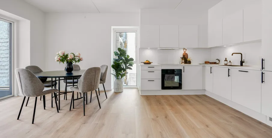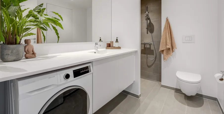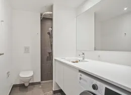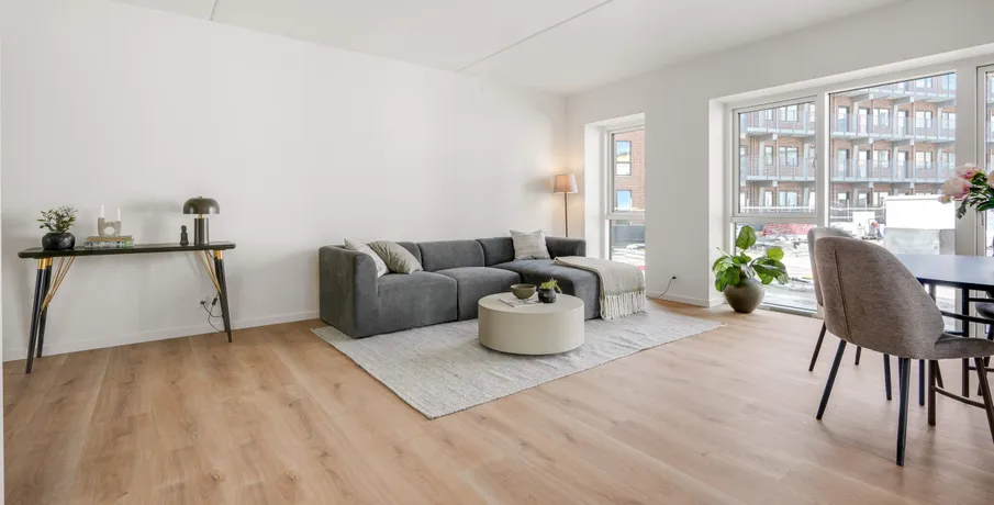 3-værelses lejlighed i Skovlunde Bymidte. Velkommen til Skovlunde Bymidte, et attraktivt boligområde med moderne lejligheder og alt til hverdagen lige i nærheden.. De 3-værelses lejligheder har moderne køkken med hårde hvidevarer, opvaskemaskine og vaskemaskine – flere med tørretumbler. Planløsningen giver god plads til både ophold og soveværelser, og boligerne er lyse og komfortable, ideelle til både par og små familier.. Ejendommen Ejendommen har elevator, cykelparkering og grønne opholdsarealer. I stueplan findes et aktivt butiksmiljø med Normal, Matas, Meny, Netto, Lagkagehuset og frisør, der gør hverdagen nem og bekvem.. Området Beliggenheden i Skovlunde Bymidte giver let adgang til offentlig transport, indkøb og fritidsaktiviteter. Skovlunde Station ligger tæt på, og S-toget kører direkte til København. I nærområdet finder du Byparken, svømmehal, skole og sportsfaciliteter.. Et lyst og praktisk hjem med alt samlet på ét sted.. Billederne i denne annonce kan være fra lignende enheder og er kun til illustration. De repræsenterer stilen og kvaliteten af de tilgængelige enheder og kan variere i opbygning og detaljer.. Møblerne vist på billederne medfølger ikke. De skal give et indtryk af, hvordan rummet kan indrettes, men er ikke inkluderet i lejemålet..