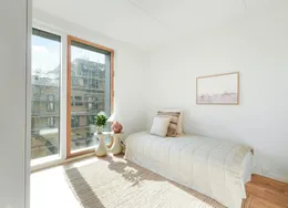 Project Radio ligger på Gyngemose Parkvej 80 i Søborg, som husede DR fra 1963 til 2007. Over de seneste år er den tidligere TV-Byen blevet omdannet til et attraktivt og livligt boligområde.Mere end 1.000 nye moderne boliger, erhverv, butikker, privathospital og store, grønne arealer pryder området. I de nye suveræne lejeboliger i 1 eller 2 plan er der plads til mindre og større børnefamilier. Boligerne varierer mellem 2-5 værelser og 49-112 m2, så du kan finde en lejlighed, der passer til dig og din families behov.Træd ind og føl dig hjemme på de mat lakerede trægulve, der står i kontrast til det rå betonloft med et sandblæst udtryk og de hvide vægge, der sætter stilen i din nye bolig. Kontrasten mellem det lyse og lette gulv og det rå, hårde betonloft bringer en dynamisk indretning til live, så boligen emmer af moderne nordisk design.Dine nye over- og underskabe fra HTH har en slidstærk, lysegrå lakering, der ligesom dit badeværelse bliver let at holde rent. I overskabene er der installeret LED-spots, der oplyser den flotte bordplade af massiv eg.De rene linjer spiller nydeligt sammen med indbygningsskabe til køle-/ fryseskab, ovn, emhætte og opvaskemaskine. Armaturet er fra Oras Saga, der er et brugervenligt, robust og alsidigt armatur i moderne, nordisk design.Dine hårde hvidevarer er af mærket Vestfrost, som leverer køle-/fryseskab, opvaskemaskine, ovn og induktionskogeplade med 4 sektioner.Badeværelset er i tråd med den høje kvalitet, som kendetegner boligen. På gulv og i bruseniche er der matte, mørkegrå klinker, der elegant spiller sammen med de tilsvarende fliser på væggene. Det væghængte og vandsparende toilet med soft luk fra Villeroy & Boch har indbygningscisterne.Den flotte keramiske håndvask er placeret over stilrene Dansani-skabe med glatte, hvide overflader, der er lette for dig at vedligeholde. Der medfølger også en vaskesøjle med vaskemaskine og tørretumbler fra Vestfrost. Armaturer i håndvask og bruseniche er fra Grohe.Project Radio byder på mange skønne fællesfaciliteter, som hele familien kan benytte sig af. Her kan børnene hygge sig, ligesom du kan invitere til børnefødselsdage med aktiviteter og spil.De mange fællesområder inde og ude byder på fremragende faciliteter som f.eks. læsesal, vaskeri og fitnessrum, som du har adgang til alle ugens dage. Her kan du fordybe dig, klare det praktiske og holde formen ved lige – og efterfølgende trække dig tilbage i dit nye hjem.Familieboligerne i Project Radio ligger i naturskønne omgivelser på grænsen til København, hvorfra du hurtigt kan ramme en supercykelsti. Området er yderst børnevenligt, og inden for få hundrede meter finder du bl.a. daginstitutionerne Solstrålen, Månestrålen og Mosen samt Mørkhøj Skole, Enghavegård Skole og Tingbjerg Skole.Der er også offentlige transportmuligheder i nærheden med buslinjer, Husum St. samt den kommende letbanestation på Dynamovej. Har du bil, kommer du hurtigt ud på Hillerødmotorvejen. Området i Gyngemose Park er et livligt miljø med kontorerhverv og boligejendomme, der er omgivet af store, grønne fællesarealer. Her finder du også butikker til de daglige indkøb. I den lokale idrætshal Gyngemosehallen og i Blågård Svømmehal kan du og børnene få sved på panden.OBS - Billederne er fra en prøvebolig.