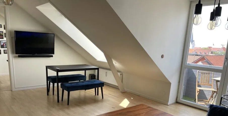 Skal dit kommende hjem være "toppen" så ser her, vi kan netop tilbyde en lækkert 3 værelses lejlighed beliggende øverst i vores 3 etagers centralt beliggende ejendom i Varde midtby. Fra lejlighedens sydvestvendt altan, får du den smukkeste udsigt ud over byens tage, kirken og i horisonten Varde Enge. Ejendommen er beliggende i gåafstand til indkøb, cafeer samt bus og togstation. Lejligheden er 80 m2 samt dejlig solrig altan Lejligheden er med hyggeligt køkkenalrum i åben forbindelse til stuen. Lyst soveværelse med tagvindue, mindre værelse også med tagvindue samt rummelig badværelse. Der er adgang til fælles vaskerrum med vaskemaskine og tørretumbler. Husdyr er ikke tilladt Strøm afregnes direkte til Norlys Depositum er 3 måneders husleje. Der er mulighed for at leje af parkeringsplads til kr. 300 pr. måned