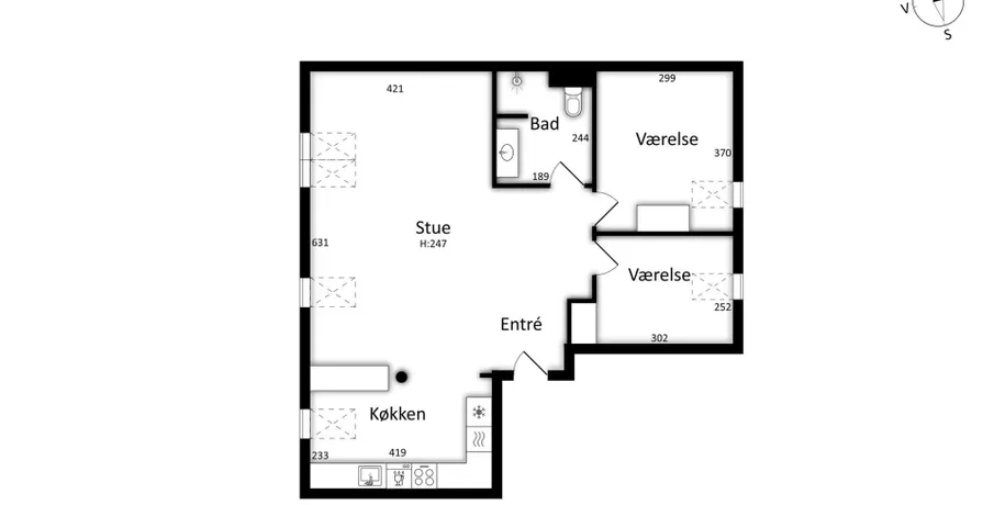 3 værelses lejlighed på 86 m²
