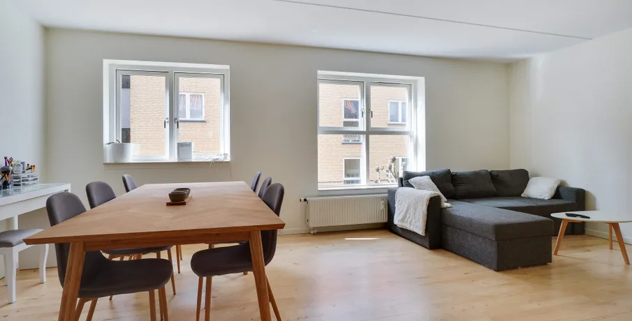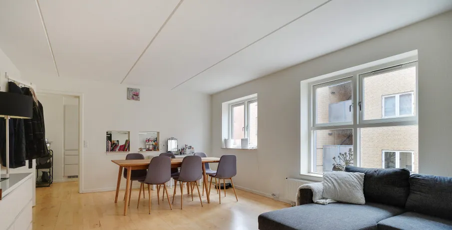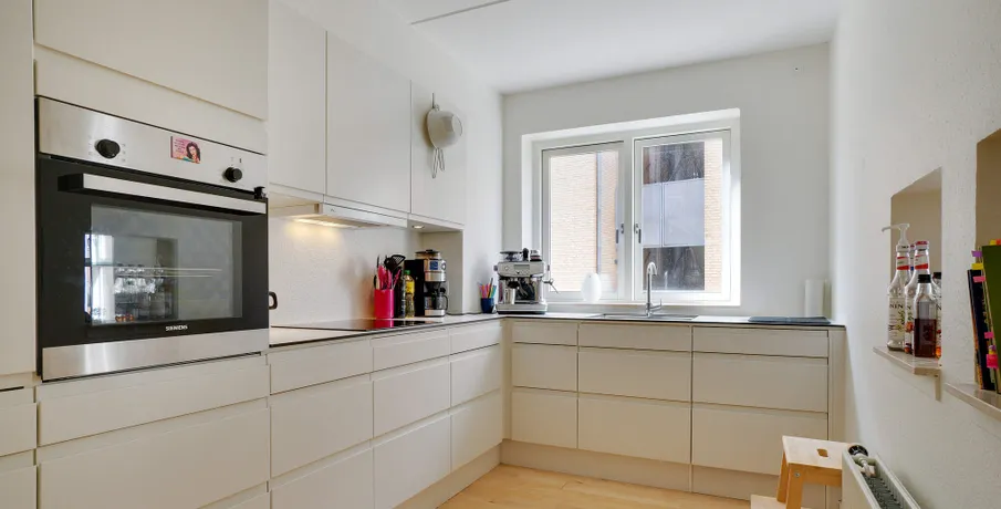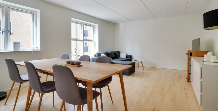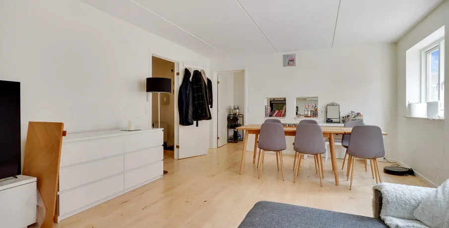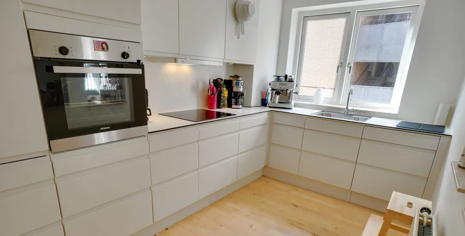 3 værelses lejlighed på 86 m². Midt i Aalborg ligger disse flotte ejendomme i Ågades Passage, som rummer 102 dejlige lejligheder fra 1993.. Denne lejlighed, som er renoveret indenfor nyere tid, er indrettet med en rummelig entre/fordelingsgang, og fra entre’en er der adgang direkte til to rummelige værelser, flot badeværelse med kombi vaskemaskine/tørretumbler samt den store stue. Fra stuen er der adgang til det flotte hvide køkken. Køkkenet er indrettet så man kan benytte det til hyggeligt samvær med venner og familie, hvor du nemt kan skabe dit flotte personlige udtryk i køkkenet. I køkkenet er der installeret ovn, komfur, emhætte, køle-/fryseskab og opvaskemaskine.. Herudover er der tilknyttet et festlokale, som kan lejes, hvilket giver rigtig gode muligheder for at kunne holde større arrangementer, men stadig være tæt på de vante omgivelser. Der er endvidere tilknyttet et fitness-rum som man frit kan benytte som lejer, når man har tid og lyst til at træne. Endelig er der indrettet et gæsteværelse, man kan leje, hvis man får overnattende gæster.. Der er mulighed for frit at vælge internetudbyder, idet der kan blandt andet vælges imellem YouSee, MaxSpeed, FastSpeed og Hiper m.fl.. Denne ejendom byder på meget mere end blot en lejlighed, idet der er:. Aconto vand er kr. 200 og aconto varme er kr. 450.. Adgang til en dele-bil. :. Herudover får man som lejer adgang til at låne / leje en el-bil, således man nemt og hurtigt kan komme rundt i Aalborg med bil.. Bilen lejes via en App, og de første 2 timer er gratis hver måned, herefter koster det kr. 30 pr. påbegyndt halve times kørsel.. Midt i byen ligger hyggelige Ågades Passage, som rummer 102 dejlige lejligheder. Ågades Passage er opført i 1993.. Her har du muligheden for at flytte i pæne istandsatte lejligheder, hvor du får rigtig mange kvadratmeter for pengene! Både hvis du ønsker en 2- eller 3-værelses.. Alle lejlighederne er bygget med store rummelige badeværelser, samt mulighed for lejligheder med både åbne og mere aflukkede køkkener.. I fire ud af seks ejendomme er der ligeledes elevator, så det er let at komme til og fra hjemmet.. Til ejendommen er der også tilknyttet et festlokale, som kan lejes. Dette giver rigtig gode muligheder for at kunne holde større arrangementer, men stadig være tæt på de vante omgivelser. Endvidere er der i ejendommen indrettet et fitness-rum, som man frit kan benytte som lejer, når man har tid og lyst til at træne. Endelig er der i ejendommen også indrettet et gæsteværelse med tilhørende badeværelse, man kan leje, hvis man får overnattende gæster, der ønsker deres eget værelse.. For yderligere informationer om lejemulighederne kontakt:. •. EMAIL. Booking af gæsteværelse. Som boende lejer i Ågades Passage har du mulighed for at leje et dejligt gæsteværelse med dobbeltseng samt eget bad og toilet.. Ved leje af gæsteværelset kan indflytning ske fra startdatoen kl. 13:00, mens udflytningen skal ske på ophørsdatoen senest kl. 11:00. Dyner og puder forefindes i værelserne, men man skal selv medbringe sengelinned, håndklæder samt sæbe m.v.. Prisen for leje af gæsteværelset fra en hverdag kl. 13:00 til en hverdag kl. 11:00 er kr. 275 pr. overnatning. Prisen for leje af gæsteværelset i en weekend er kr. 550 for perioden fredag kl. 13:00 til mandag kl. 11:00. Bookingen kan senest afbestilles en uge forinden.. Lejer skal selv sørge for en komplet udluftning og slutrengøring af værelset. inkl. bad og toilet, dog kan rengøring mod betaling bestilles ved bookingen. Rengøringen afregnes efter medgået tid. Efter afleveringen af gæsteværelset vil viceværten gennemgå og kontrollere værelset, og lejer hæfter for eventuel mangelfuld rengøring eller eventuelle skader.. Nøgle og nøglebrik udleveres af ejendommens vicevært.. Se kalenderen for gæsteværelset:. Tryk her. Booking af festlokale. Festlokalet udlejes alene til boende lejere i Ågades Passage. Der er plads til 60 personer i festlokalet.. Nøgle udleveres af ejendommens vicevært.. Prisen for leje af festlokalet fra en hverdag kl. 13.00 til en hverdag kl. 08.00 er kr. 450.. Prisen for leje af festlokalet i en weekend er kr. 900 for perioden fredag kl. 13:00 til mandag kl. 08.00.. Bookingen kan senest afbestilles en uge forinden.. Lejer skal selv sørge for en komplet udluftning og slutrengøring af lokalet inkl. toiletter og køkken, dog kan rengøring mod betaling bestilles ved bookingen. Rengøringen afregnes efter medgået tid. Efter afleveringen af fælleslokalet vil viceværten gennemgå og kontrollere lokalet, og lejer hæfter for eventuel mangelfuld rengøring eller eventuelle skader. Ved leje af festlokalet til aftenarrangementer skal det oplyses, at strømmen til musikanlægget bliver taget kl. 24:00, da der ikke må spilles musik efter dette tidspunkt.. Se kalenderen for festlokalet:. Tryk her