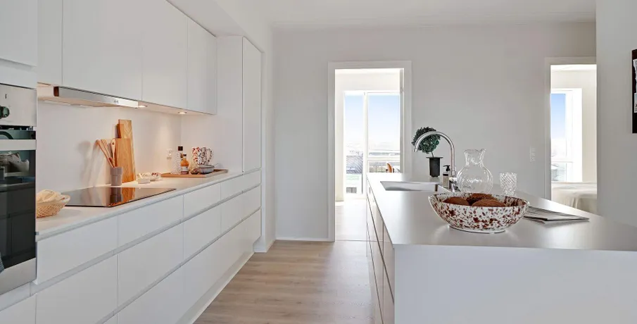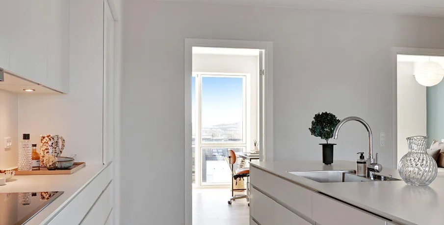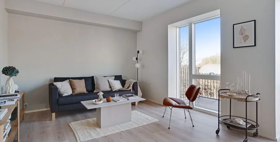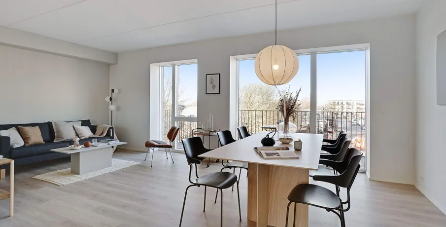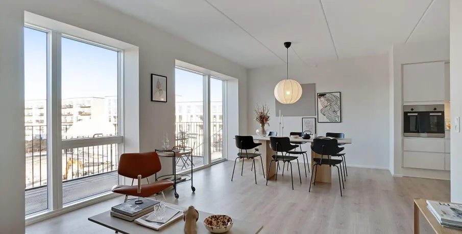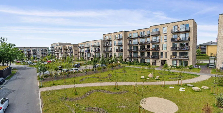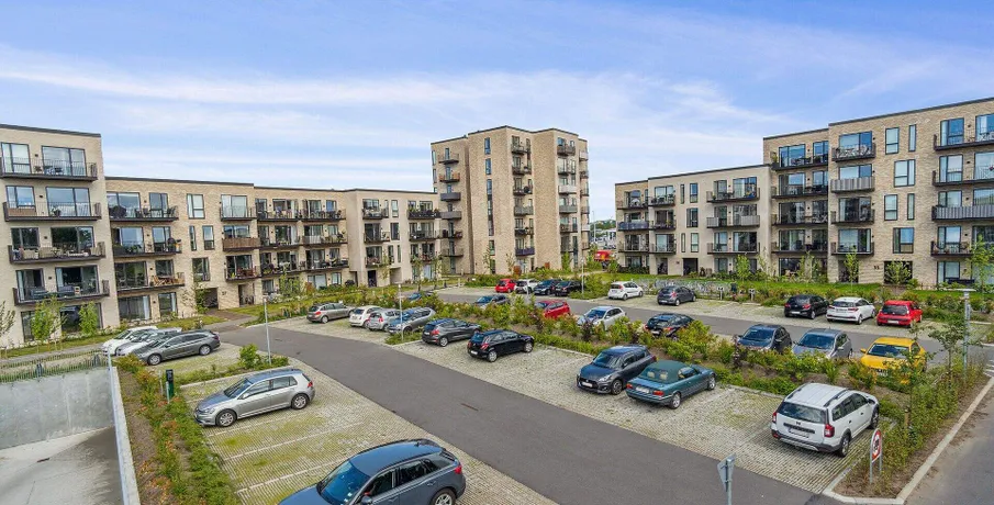 3 værelses lejlighed på 90 m². Her er muligheden for at leje en skøn 3-værelses lejlighed i Oasen.. Lejligheden er indrettet med en entre, hvor der er mulighed for at komme af med sko og overtøj i en indbygget garderobe med LED-lys. Fra entreen er der direkte adgang til værelset, soveværelset samt køkken / alrummet og stue.. I køkkenet som er både lyst og rummeligt, er der installeret køle-/fryseskab, komfur, ovn og opvaskemaskine, og herudover er der både god skabsplads og bordplads. Ved kogeøen er der lavet plads til at man kan sidde, mens der laves mad.. Lejligheden indeholder desuden et godt værelse samt et soveværelset, hvor der er indbyggede skabe. I lejlighedens badeværelse, som er godt udnyttet, er der installeret både vaskemaskine og tørretumbler, så det er nemt at ordne vasketøjet.. Der er desuden direkte adgang fra stuen ud til en solvendt terrasse, hvor der er sol fra eftermiddag til den går ned. Der er gulvvarme i hele lejligheden og der er store vinduespartier som giver et utrolig godt lysindfald i hele lejligheden.. Oasen tilbyder meget mere end blot en lejlighed:. Der er installeret fibernet i ejendommen, og der er mulighed for frit at vælge internetudbyder, der kan blandt andet vælges imellem FastSpeed, Hiper og Kviknet m.fl.. Adgang til en dele-bil:. Herudover får man som lejer adgang til at leje en el-bil, således man nemt og hurtigt kan komme rundt i Aalborg med bil. Bilen lejes via en App.. OBS: Billederne er fra ejendommens prøvebolig, hvorfor indretningen kan variere fra dette lejemål.. Digterkvarteret er en spændende bydel – et sted med udvikling og stort potentiale. Med dets placering nær centrum, natur og infrastruktur er der grundlag for et enestående område, hvor børnefamilier, unge og ældre kan bosætte sig i fællesskab.. Oasen består af boliger i høj arkitektonisk kvalitet, placeret i en grøn oase væk fra byens puls.. Byggeriet danner en skærmet og tryg base for de kommende beboere, men inviterer også folk indenfor gennem de mange åbninger i bebyggelsen.. Bebyggelsen får en god spredning af boligtyper, hvilket understøtter ønsket om en bred beboersammensætning.. Der er indbygget flere forskellige boligtyper i bebyggelsen:. • Type A er 2-værelseslejligheder på ca. 50 m2. • Type B er 3-værelseslejligheder på 72-96 m2 og. • Type C er 4-værelseslejligheder på 94-117 m2. Bebyggelsen omfatter samlet set ca. 16.000 kvm fordelt på 211 boliger.. Oasen er et fredfyldt og grønt område med lejeboliger centralt beliggende øverst på Skalborg Bakke i Aalborg. Her lukker de høje bygningskroppe af for støjen, og inde bagved finder du den grønne gårdsplads med hække og eksotiske træer, hvor der er ro og fred. I de små, beplantede miljøer kan du enten trække dig tilbage i private, grønne lommer eller være sammen med dine nye naboer.. I en dal bag gårdspladsen ligger bydelens bedst bevarede overraskelse, nemlig en privat søpark omkranset af gamle træer og med små private haver, legeplads og grillområder.. Se video af kolonihavehusene og søparken:. For yderligere informationer om lejemulighederne eller for at blive skrevet på vores interesseliste, kan du kontakte. •. EMAIL