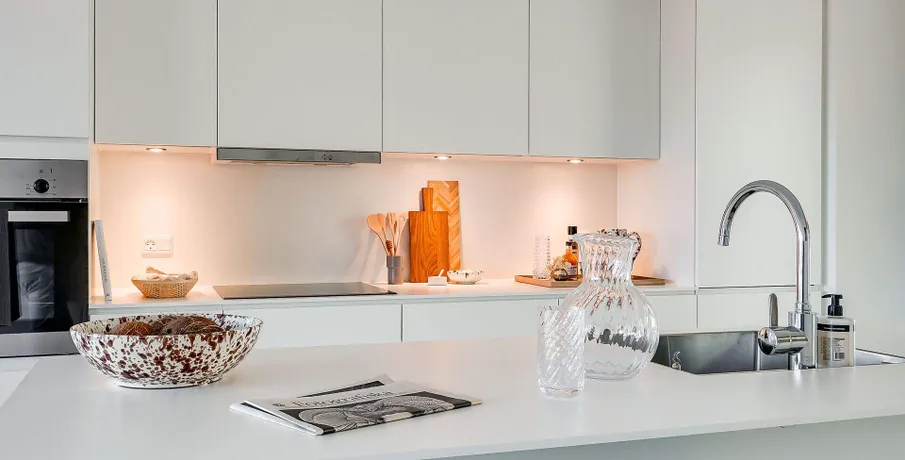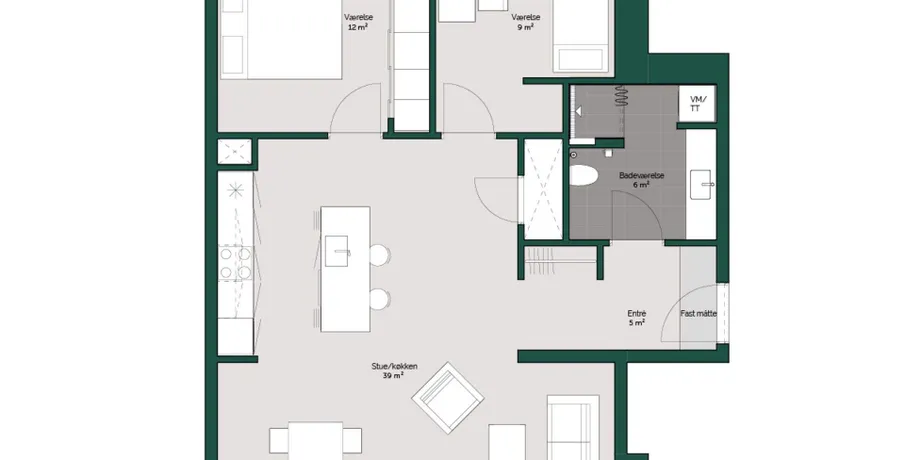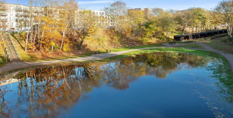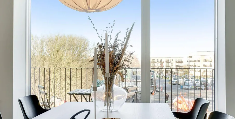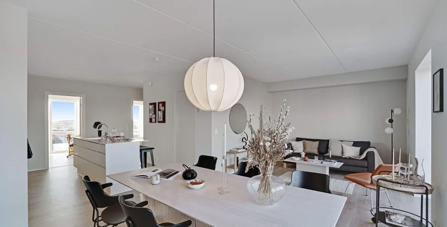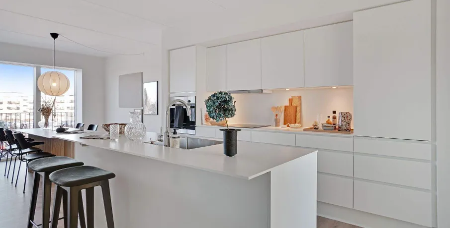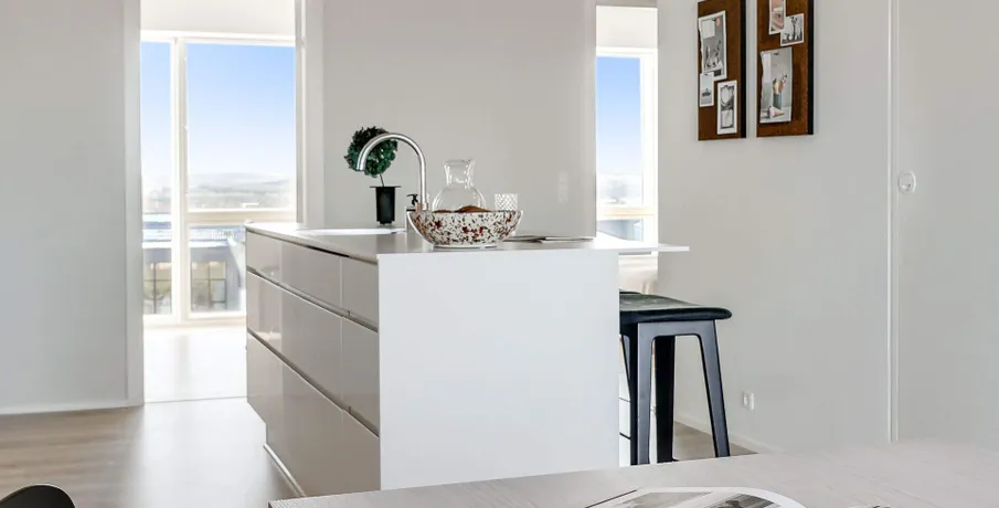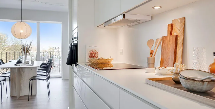 3 værelses lejlighed på 90 m². Her er muligheden for at leje en skøn 3-værelses lejlighed i Oasen.. Lejligheden er indrettet med en entre, hvor der er mulighed for at komme af med sko og overtøj i en indbygget garderobe med LED-lys. Fra entreen er der direkte adgang til værelset, soveværelset samt køkken / alrummet og stue.. I køkkenet som er både lyst og rummeligt, er der installeret køle-/fryseskab, komfur, ovn og opvaskemaskine, og herudover er der både god skabsplads og bordplads. Ved kogeøen er der lavet plads til at man kan sidde, mens der laves mad.. Lejligheden indeholder desuden et godt værelse samt et soveværelset, hvor der er indbyggede skabe. I lejlighedens badeværelse, som er godt udnyttet, er der installeret både vaskemaskine og tørretumbler, så det er nemt at ordne vasketøjet.. Der er desuden direkte adgang fra stuen ud til en solvendt terrasse, hvor der er sol fra eftermiddag til den går ned. Der er gulvvarme i hele lejligheden og der er store vinduespartier som giver et utrolig godt lysindfald i hele lejligheden.. Oasen tilbyder meget mere end blot en lejlighed:. Der er installeret fibernet i ejendommen, og der er mulighed for frit at vælge internetudbyder, der kan blandt andet vælges imellem FastSpeed, Hiper og Kviknet m.fl.. Adgang til en dele-bil:. Herudover får man som lejer adgang til at leje en el-bil, således man nemt og hurtigt kan komme rundt i Aalborg med bil. Bilen lejes via en App.. OBS: Billederne er fra ejendommens prøvebolig, hvorfor indretningen kan variere fra dette lejemål.. Digterkvarteret er en spændende bydel – et sted med udvikling og stort potentiale. Med dets placering nær centrum, natur og infrastruktur er der grundlag for et enestående område, hvor børnefamilier, unge og ældre kan bosætte sig i fællesskab.. Oasen består af boliger i høj arkitektonisk kvalitet, placeret i en grøn oase væk fra byens puls.. Byggeriet danner en skærmet og tryg base for de kommende beboere, men inviterer også folk indenfor gennem de mange åbninger i bebyggelsen.. Bebyggelsen får en god spredning af boligtyper, hvilket understøtter ønsket om en bred beboersammensætning.. Der er indbygget flere forskellige boligtyper i bebyggelsen:. • Type A er 2-værelseslejligheder på ca. 50 m2. • Type B er 3-værelseslejligheder på 72-96 m2 og. • Type C er 4-værelseslejligheder på 94-117 m2. Bebyggelsen omfatter samlet set ca. 16.000 kvm fordelt på 211 boliger.. Oasen er et fredfyldt og grønt område med lejeboliger centralt beliggende øverst på Skalborg Bakke i Aalborg. Her lukker de høje bygningskroppe af for støjen, og inde bagved finder du den grønne gårdsplads med hække og eksotiske træer, hvor der er ro og fred. I de små, beplantede miljøer kan du enten trække dig tilbage i private, grønne lommer eller være sammen med dine nye naboer.. I en dal bag gårdspladsen ligger bydelens bedst bevarede overraskelse, nemlig en privat søpark omkranset af gamle træer og med små private haver, legeplads og grillområder.. Se video af kolonihavehusene og søparken:. For yderligere informationer om lejemulighederne eller for at blive skrevet på vores interesseliste, kan du kontakte. •. EMAIL