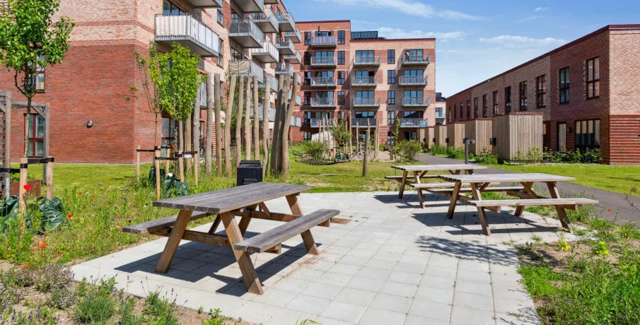 Om boligen:Denne skønne og optimerede lejlighed starter med at byde dig velkommen i et lyst entréområde med plads til at hænge overtøjet og med adgang til et stort soveværelse, hvor der er plads til den store seng – fra soveværelset har du yderligere adgang til lejlighedens depotrum, som med fordel kan bruges til walk-in, hvis dette foretrækkes. Fra entréen har du ydermere adgang til badeværelset, som er opført i et tidløst lækkert design, rummeligt og med separat bruseniche og hertil både med vaskemaskine og tørretumbler. I det store lyse køkken-alrum finder du et lækkert fuldt udstyret hvidt køkken med køle-/fryseskab, ovn, kogeplader, emhætte og opvaskemaskine samt god opbevaringsplads. Stuen er godt indrettet med optimale anvendelsesmuligheder, hvor der veludnyttet kan etableres både en sofa- og spiseafdeling. Stuen munder ud i en stor sydvendt altan, hvor sol og frisk luft kan nydes. Fra stuen finder du også lejlighedens sidste værelse, som har plads til både seng og skrivebord. Hele lejligheden er desuden installeret med gulvvarme, som kan justeres individuelt i de enkelte rum. Bemærk venligst, at billederne kan være fra en anden bolig, hvorfor indretning, beliggenhed og udsigt kan variere. Materialevalg og kvalitet er den samme for alle boliger i ejendommen. Se plantegningen for indretningen af denne bolig.Om Banehaverne: Banehaverne er tegnet af det prisvindende arkitektfirma Sweco Architects, som har ønsket at skabe en ejendom med fokus på fællesskab og livskvalitet.Ejendommen rummer i alt 16 bygninger (inkl. rækkehuse), der centrerer sig omkring smukke gårdrum med legearealer og rolige opholdszoner. I alt kommer her 6 unikke gårdrum, som forbindes af en lang sti, som snor sig gennem hele komplekset og ender i det store aktivitetsområde Kilen.Kort om området: Området omkring Banehaverne byder på en harmonisk blanding af natur, kultur og byliv.Her er storslået natur ved både vand og skov, gode skoler og daginstitutioner samt et væld af fritidstilbud inden for både friluftsliv, idræt og kreative aktiviteter.Alt sammen er med til at skabe de bedste forudsætninger for en hverdag, der glider nemt og er rig på sjove og spændende muligheder.Banehaverne nyder godt af deres strategiske placering tæt på København. Med kun 10 min. gang til Glostrup Station og nem adgang til motorvejsnetværket er København tæt på. Det åbner dørene til en bred vifte af jobmuligheder og uddannelsesinstitutioner. Du kan nyde godt af den korte afstand til København, mens du stadig kan trække dig tilbage til den rolige atmosfære i Glostrup/Brøndby om aftenen.