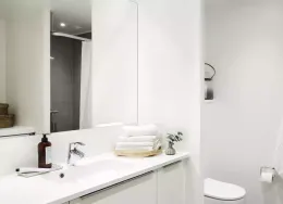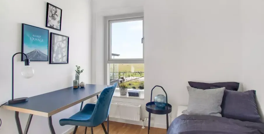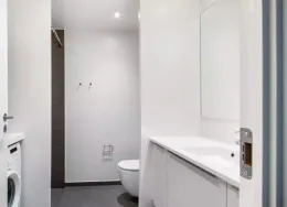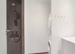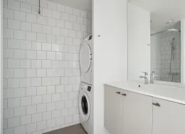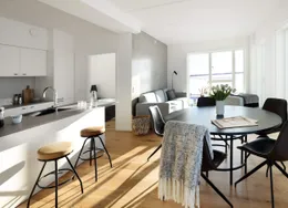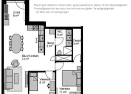 Lejlighedens hjerte er et centralt opholdsrum med åbent køkken, spiseplads og opholdsstue. Lejligheden er opført i klassiske, tidssvarende materialer og har store vinduer, hvilket giver et fantastisk lysindfald. Køkkenet, som er fra Invita, fremstår lyst og med indbyggede, hårde hvidevarer fra Siemens. Badeværelset er praktisk med gulvvarme, indbyggede spots, separat bruseniche samt vaskesøjle. I soveværelset er der installeret skabe med plads til opbevaring. Det er muligt at ansøge om husdyrtilladelse i alle vores lejemål. OBS: ønskes der mål af lejligheden skal du selv huske opmålings udstyr til fremvisning, da der ikke er mål på plantegningen.