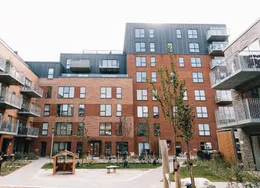 Om boligen:Denne skønne og optimerede lejlighed starter med at byde dig velkommen i lys entré/fordelingsgang. Herfra har du adgang til boligens to værelser, hvor der både er plads til seng og skrivebord tillige med adgang til det store soveværelse med adgang til depotrum, som med fordel kan bruges til walk-in, hvis dette foretrækkes. Fra entréen har du ydermere adgang til badeværelset, som er opført i et tidløst lækkert design, rummeligt og med separat bruseniche og hertil både med vaskemaskine og tørretumbler. I det store lyse køkken-alrum finder du et lækkert fuldt udstyret hvidt køkken med køle-/fryseskab, ovn, kogeplader, emhætte og opvaskemaskine samt god opbevaringsplads. Stuen er godt indrettet med optimale anvendelsesmuligheder, hvor der veludnyttet kan etableres både en sofa- og spiseafdeling. Stuen munder ud i en stor østvendt altan, hvor sol og frisk luft kan nydes og hvor du har kig ud over det nærliggende villaområde. Hele lejligheden er desuden installeret med gulvvarme, som kan justeres individuelt i de enkelte rum. Bemærk venligst, at billederne kan være fra en anden bolig, hvorfor indretning, beliggenhed og udsigt kan variere. Materialevalg og kvalitet er den samme for alle boliger i ejendommen. Se plantegningen for indretningen af denne bolig.Om Banehaverne: Banehaverne er tegnet af det prisvindende arkitektfirma Sweco Architects, som har ønsket at skabe en ejendom med fokus på fællesskab og livskvalitet.Ejendommen rummer i alt 16 bygninger (inkl. rækkehuse), der centrerer sig omkring smukke gårdrum med legearealer og rolige opholdszoner. I alt kommer her 6 unikke gårdrum, som forbindes af en lang sti, som snor sig gennem hele komplekset og ender i det store aktivitetsområde Kilen.Kort om området: Området omkring Banehaverne byder på en harmonisk blanding af natur, kultur og byliv.Her er storslået natur ved både vand og skov, gode skoler og daginstitutioner samt et væld af fritidstilbud inden for både friluftsliv, idræt og kreative aktiviteter.Alt sammen er med til at skabe de bedste forudsætninger for en hverdag, der glider nemt og er rig på sjove og spændende muligheder.Banehaverne nyder godt af deres strategiske placering tæt på København. Med kun 10 min. gang til Glostrup Station og nem adgang til motorvejsnetværket er København tæt på. Det åbner dørene til en bred vifte af jobmuligheder og uddannelsesinstitutioner. Du kan nyde godt af den korte afstand til København, mens du stadig kan trække dig tilbage til den rolige atmosfære i Glostrup/Brøndby om aftenen.