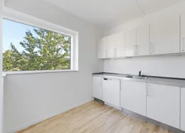 Familievenligt rækkehus med have mod sydvestVeldisponeret enderækkehus i 2 plan med parkering – og elladestandere – lige uden for døren. Fra indgangsterrassen foran huset træder du ind i vindfanget, som er direkte forbundet med boligens hjerte, køkken-alrummet. Stueetagen rummer desuden toilet og en hyggelig stue. Fra stuen er der udgang til haven, som med sin placering mod sydvest giver dig mange soltimer r, samtidig med at du er tæt på kvarterets store grønne fællesområde. På førstesalen finder du badeværelset, et stort soveværelse og to gode værelser med ekstra højt til loftet.Bemærk venligst, at de viste billeder er ikke fra/af den pågældende bolig, hvorfor udsigt, rum mv. kan variere. De viste billeder er derfor kun et eksempel, og den endelige størrelse og indretning kan variere (se plantegningen).