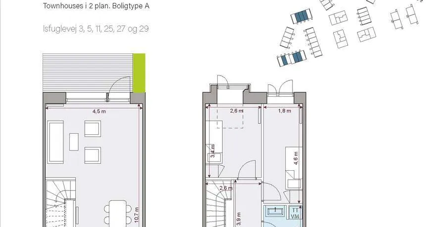 Kun en halv times kørsel fra Indre København får du her fodfæste i den nordsjællandske natur og kommer tæt på skovens træer og havets bølger.Teglsøerne er et moderne og mangfoldigt boligkvarter i kystbyen Nivå og byder på både ejerlejligheder, rækkehuse samt townhouses. Søhusene er Urbane townhouses på 113-123 m2 fordelt på to plan bygget til dagligdagens nødvendigheder og weekendens sammenkomster. Privatliv og samvær – det er dét, Søhusene kan. Boligerne på 113 – 123 m2 indeholder i stueplan en entré med adgang til gæstetoilet og til stort opholdsrum med køkken, spisestue og stue. Stuen har direkte adgang til egen terrasse, hvor der er plads til grønne fingre og frokost i det fri. 1. sal byder på tre værelser og et moderne badeværelse med vaskesøjle. Boligen har masser af sollys fra karnapper og kviste, der bryder tagkanten med store vinduespartier og skaber hyggelige opholdskroge med lys og luft.Til rækkehusene medfølger: Skur (depot/opbevaring), alle hårde hvidevarer, gulvvarme på badeværelse/toilet, parkering i området efter først til mølle.BEMÆRK at billederne er fra en prøvebolig.