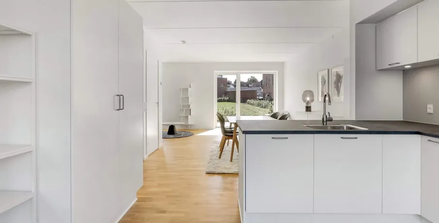 Tekstilparken er skabt til børnefamilier, der ønsker et trygt og børnevenligt miljø med fokus på rummelige og funktionelle boliger. Her bor I omgivet af andre børnefamilier, og området er perfekt til fællesskab og leg med masser af plads på den store grønne græsplæne, hvor børnene kan løbe frit og lege trygt.. Boligerne i Tekstilparken er designet specielt med børnefamilier i tankerne. Rækkehusene har en gennemtænkt planløsning med plads til hele familien og en smart opdeling mellem opholds- og soverum. Hver bolig har behagelig gulvvarme i hele huset, hvilket sikrer komfort året rundt.. Det åbne køkken-alrum er hjertet i boligen og skaber et naturligt samlingspunkt, hvor familien kan tilbringe kvalitetstid sammen. Køkkenet er udstyret med stilrene HTH-moduler og alle nødvendige kvalitets-hvidevarer, og de store vinduer sikrer et skønt lysindfald. Der er direkte udgang til både en lille forhave og en hyggelig baghave, hvor I kan nyde måltiderne om sommeren.. Tekstilparken ligger tæt på skov, by og Odense Havn, så både naturen og byens muligheder er lige ved hånden. Her er der også kort afstand til skoler og daginstitutioner, hvilket gør hverdagen nem for børnefamilien. Med supermarkedet Rema100 tæt på har I alle daglige fornødenheder inden for rækkevidde.. Området byder desuden på grønne gårdrum og gode naborelationer, hvilket gør det nemt for børnene at finde legekammerater i alle aldre. Tekstilparken er et ideelt sted for jer, der ønsker både byliv, natur og et trygt fællesskab for familien.. Book en fremvisning og oplev, hvorfor Tekstilparken er det oplagte valg for børnefamilier.. Se mere omkring boligerne på;