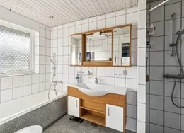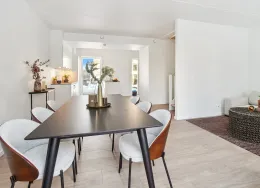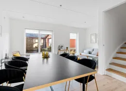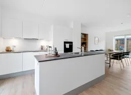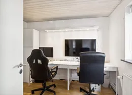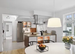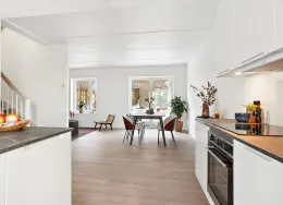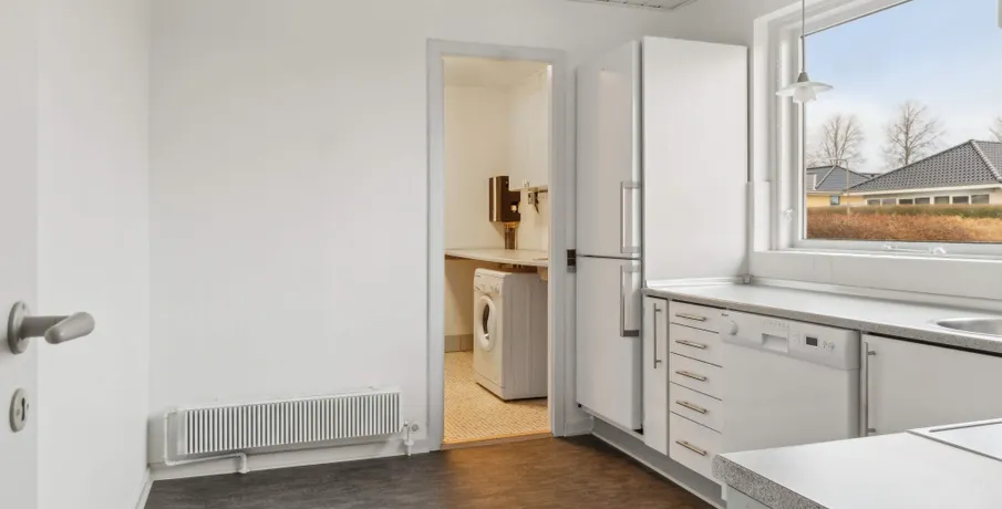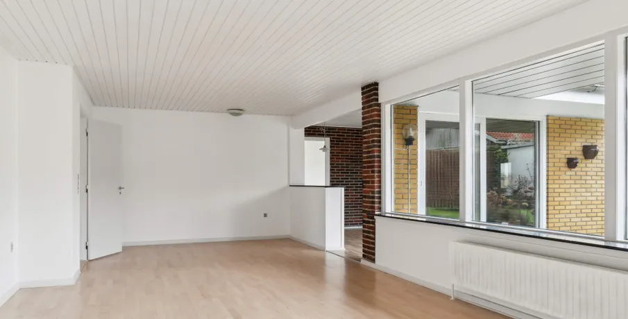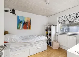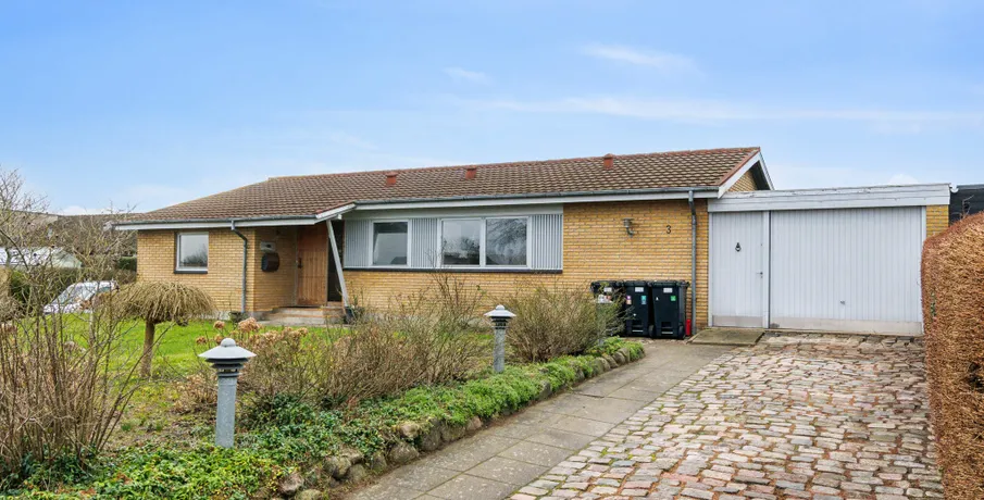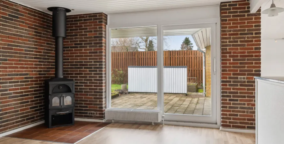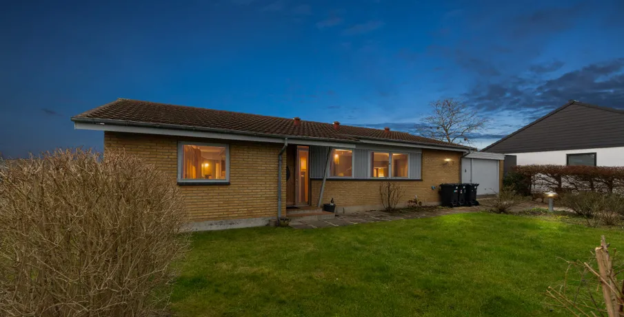 I et etableret og roligt villakvarter ligger denne hyggelige og velholdte gulstensvilla fra 70’erne, der nu udbydes til leje. Huset er nymalet, har fået slebet trægulve og delvist nye gulve, så det fremstår helt indflytningsklart. Med sin klassiske planløsning og rummelige indretning er boligen ideel til både familier og par, der ønsker god plads og en dejlig have at nyde året rundt.Villaen har en klassisk fordelingsgang, hvorfra rummene fordeler sig. Her findes et mindre værelse med skab, endnu et værelse samt et soveværelse med et stort indbygget skab med skydelåger. De to store, sammenhængende stuer giver rig mulighed for at indrette både spiseafdeling, TV-stue og hyggelige opholdsområder. Stuerne adskilles af en lav halvvæg, der skaber en åben og luftig fornemmelse, mens den inderste stue har brændeovn og rå murstensvægge, som tilfører varme og hygge. Fra denne stue er der adgang til endnu et værelse, der kan bruges som kontor, gæsteværelse eller legerum.Badeværelset har et originalt, men stilrent udtryk med flotte grå klinker, badekar og et praktisk skabsarrangement. Køkkenet fremstår pænt med hvide låger, der er renoveret for få år siden, og er udstyret med alt i hårde hvidevarer samt plads til en mindre spiseafdeling. Boligen rummer også et praktisk bryggers med vaskefaciliteter og direkte udgang til garagen, så man kan gå tørskoet fra bilen i al slags vejr.Haven er noget helt særligt og vidner om stor kærlighed til udelivet. Der er anlagt smukke blomsterbede og buske, der blomstrer i takt med sæsonerne, hvilket skaber en frodig og farverig atmosfære. Huset ligger på en hjørnegrund, hvilket giver en dejlig have rundt om det meste af boligen. Fra stuen er der udgang til en privat, solrig terrasse i baghaven, hvor der er plads til både afslapning og hyggelige sammenkomster. Derudover er der etableret højbede, så der er mulighed for at dyrke sin egen køkkenhave.Beliggenheden er ideel med kort afstand til busstoppested, dagtilbud, skole og indkøb, hvilket gør hverdagen nem og bekvem. Alt i alt er denne bolig en skøn kombination af charme, funktionalitet og en rolig beliggenhed – perfekt til dig, der ønsker en indflytningsklar villa med en fantastisk have i et trygt og velfungerende nabolag.Villaen udlejes pr. 1. juni 2026 for en længere periode på 3 år eller mere efter aftale. Lejemålet er uopsigeligt det første år. Forbrug betales direkte til forsyningsværkerne. Depositum: 3 måneders leje (1. måneds husleje betales samtidig)