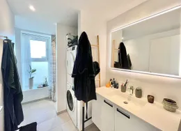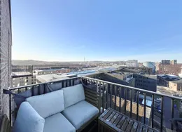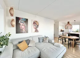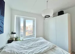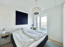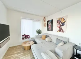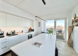 . Perfekt planløsning. Boligen har en god planløsning, der er fordelt på to plan. Den har tre rummelige værelser samt to badeværelser. Boligens hjerterum er uden tvivl det lækre og moderne køkken, der ligger i åben forbindelse til spiseplads og den hyggelige stue. Fra stuen er der udgang til én ud af de fire altaner som lejligheden rummer. Der er dermed rig mulighed for at nyde solen og det dejlige område.. Dejlig beliggenhed. Lejemålet er placeret er i en helt nybygget ejendom på Kong Hans Gade, med gåafstand til bl.a Haraldslund Vand- og kulturhus, Aalborg Stadion, Vesterbro og Aalborg centrum. På Kong Hans Gade bor i ved grønne områder med Mølleparken tæt på, ligesom der er kort afstand til både skole, institutioner og pasningsordninger.. Parkering. Der er mulighed for at tilkøbe en parkeringslicens ved lejemålet.. OBS. :. 1) Hvis man får tilladelse til mindre husdyr (SPØRG INDEN FREMVISNING) - gebyr på 300 kr. pr. mdr..