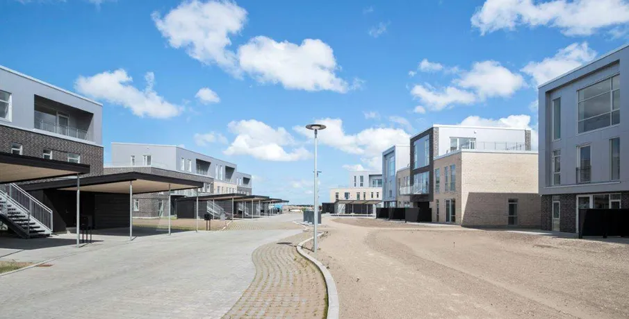 Sofiendalen. Sofiendalen er det perfekte sted at bo for alle, der drømmer om at bo i pagt med naturen, uden at flytte væk fra byen. Her får du en nyopført bolig med en beliggenhed, der leverer på både natur og nærhed til byens centrum. De nyopførte boliger ligger i bydelen Sofiendal Enge, i den sydvestlige del af Aalborg. Bydelen er lille, fredelig og hyggelig, men samtidig er her alt, hvad man har brug for til daglig og i fritiden. Sofiendal Enge er en bydel, med fokus på grønne områder, som både skaber luft mellem boligerne og giver mulighed for udendørs nabofællesskaber. Samtidig er der en god adgang til natur og flot udsigt over området. Området ligger tæt på sportsfaciliteter med nem adgang til folkeskole og daginstitution, kun få kilometer fra midtbyens pulserende byliv, altså en bydel, der appellerer til mange forskellige mennesker og familier. Alle boliger har private udendørs opholdsarealer i form af egen terrasse, tagterrasse eller altan, og alle kan desuden benytte de indbydende, grønne fællesarealer. Alle boliger er funktionelt indrettet for at udnytte hver kvadratmeter, og der er lagt stor vægt på, at boligerne kræver et absolut minimum vedligeholdelse. OBS: Billederne kan være af en prøvebolig, og ikke den specifikke bolig.
