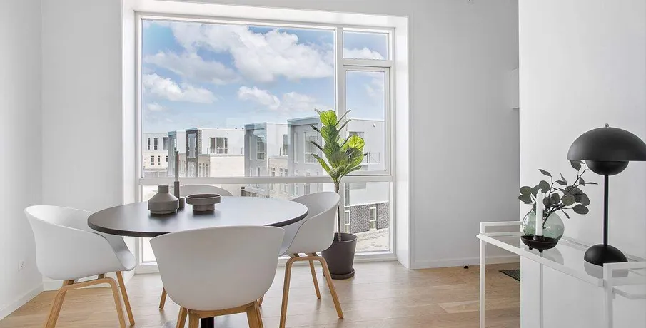 Sofiendalen. Sofiendalen er det perfekte sted at bo for alle, der drømmer om at bo i pagt med naturen, uden at flytte væk fra byen. Her får du en nyopført bolig med en beliggenhed, der leverer på både natur og nærhed til byens centrum. De nyopførte boliger ligger i bydelen Sofiendal Enge, i den sydvestlige del af Aalborg. Bydelen er lille, fredelig og hyggelig, men samtidig er her alt, hvad man har brug for til daglig og i fritiden. Sofiendal Enge er en bydel, med fokus på grønne områder, som både skaber luft mellem boligerne og giver mulighed for udendørs nabofællesskaber. Samtidig er der en god adgang til natur og flot udsigt over området. Området ligger tæt på sportsfaciliteter med nem adgang til folkeskole og daginstitution, kun få kilometer fra midtbyens pulserende byliv, altså en bydel, der appellerer til mange forskellige mennesker og familier. Alle boliger har private udendørs opholdsarealer i form af egen terrasse, tagterrasse eller altan, og alle kan desuden benytte de indbydende, grønne fællesarealer. Alle boliger er funktionelt indrettet for at udnytte hver kvadratmeter, og der er lagt stor vægt på, at boligerne kræver et absolut minimum vedligeholdelse. OBS: Billederne kan være af en prøvebolig, og ikke den specifikke bolig.