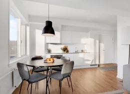 Nyopførte lejligheder i Virkelund i Coop Byen.Denne 4-værelses lejlighed indeholder tre gode soveværelser samt et godt køkken/alrum med naturlig opdeling af spisestue og opholdsstue. Lejligheden er øverst beliggende og har loft til kip.Til boligen er derudover tilhørende en vestvendt altan, hvorfra aftensolen kan nydes. I Gæstfriheden er der boliger til alle. Her kan enlige, par, familier og modne voksne finde deres hjem med perfekte private rammer kombineret med omgivelser, der indbyder til fællesskab. I første etape udbydes 61 boliger, der spænder mellem 2-værelses fra 60 kvadratmeter til 5-værelses taglejligheder på 137 kvadratmeter. Der er derfor rig mulighed for at finde lige netop dén bolig, der passer dig.I Gæstfriheden er æstetik og funktionalitet nøgleord. Boligerne er indrettet til en moderne livsstil med lyse rum, gode planløsninger og lækre detaljer. Blandt andet er boligerne indrettet med køkkener fra Stykka, der foruden produktion under bæredygtige hensyn, bringer farve ind i boligen.I Virkelund finder du boliger, som henvender sig til alle faser i livet – fra større familieorienterede boliger, til small living boliger for enlige og par samt boliger for modne voksne, der ønsker moderne rammer med nem ankomst og minimalt vedligehold.Samtlige boliger opføres under hensyn til miljøvenlige materialer og et sundt indeklima. Derudover har alle boliger egen altan eller terrasse, hvorfra den friske luft kan nydes omgivet af bykvarterets levende stemning.BEMÆRK billederne er fra en prøvebolig.