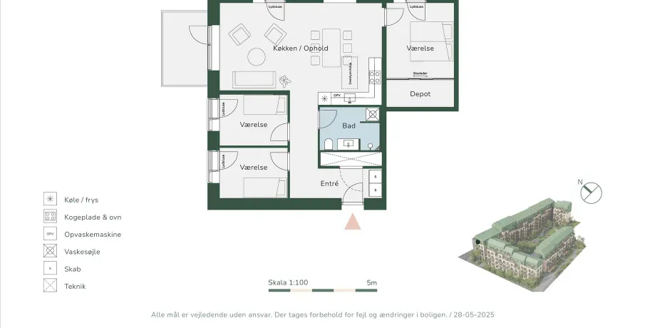 Nyopførte lejligheder i Virkelund i Coop Byen.Denne 4-værelses lejlighed byder på 111 m² med en lukket altan og åbent køkken-alrum, tre gode soveværelser, praktisk depot og mederne bad med vaskesøjle. Indbyggede skabe i entréen giver ekstra opbevaringsplads.I Gæstfriheden er der boliger til alle. Her kan enlige, par, familier og modne voksne finde deres hjem med perfekte private rammer kombineret med omgivelser, der indbyder til fællesskab. I første etape udbydes 61 boliger, der spænder mellem 2-værelses fra 60 kvadratmeter til 5-værelses taglejligheder på 137 kvadratmeter. Der er derfor rig mulighed for at finde lige netop dén bolig, der passer dig.I Gæstfriheden er æstetik og funktionalitet nøgleord. Boligerne er indrettet til en moderne livsstil med lyse rum, gode planløsninger og lækre detaljer. Blandt andet er boligerne indrettet med køkkener fra Stykka, der foruden produktion under bæredygtige hensyn, bringer farve ind i boligen.I Virkelund finder du boliger, som henvender sig til alle faser i livet – fra større familieorienterede boliger, til small living boliger for enlige og par samt boliger for modne voksne, der ønsker moderne rammer med nem ankomst og minimalt vedligehold.Samtlige boliger opføres under hensyn til miljøvenlige materialer og et sundt indeklima. Derudover har alle boliger egen altan eller terrasse, hvorfra den friske luft kan nydes omgivet af bykvarterets levende stemning.BEMÆRK billederne er fra en prøvebolig.