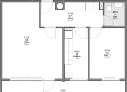 2 værelses på 65 m2