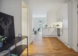 4-værelses lejlighed i Hylden i Hedehusene. Velkommen til Hylden i Hedehusene, rummelige og moderne lejligheder med fokus på komfort og familieliv.. De 4-værelses lejligheder har moderne køkken med hårde hvidevarer, vaskemaskine og flere med tørretumbler. Planløsningen giver god plads til både familieliv og samvær, og flere boliger har altan.. Ejendommen. Hylden er et moderne byggeri med elevator, cykelparkering og grønne fællesområder. Her får du en tryg og rolig hverdag i gode rammer.. Området. Ejendommen ligger centralt i Hedehusene tæt på stationen, hvor lyntoget kører til København på cirka 19 minutter. Området byder på grønne parker, indkøbsmuligheder og flere skoler, herunder Læringshuset, der har et inspirerende læringsmiljø for børn og unge.. Et rummeligt hjem i et familievenligt område tæt på byen.. Billederne i denne annonce kan være fra lignende enheder og er kun til illustration. De repræsenterer stilen og kvaliteten af de tilgængelige enheder og kan variere i opbygning og detaljer.. Møblerne vist på billederne medfølger ikke. De skal give et indtryk af, hvordan rummet kan indrettes, men er ikke inkluderet i lejemålet..