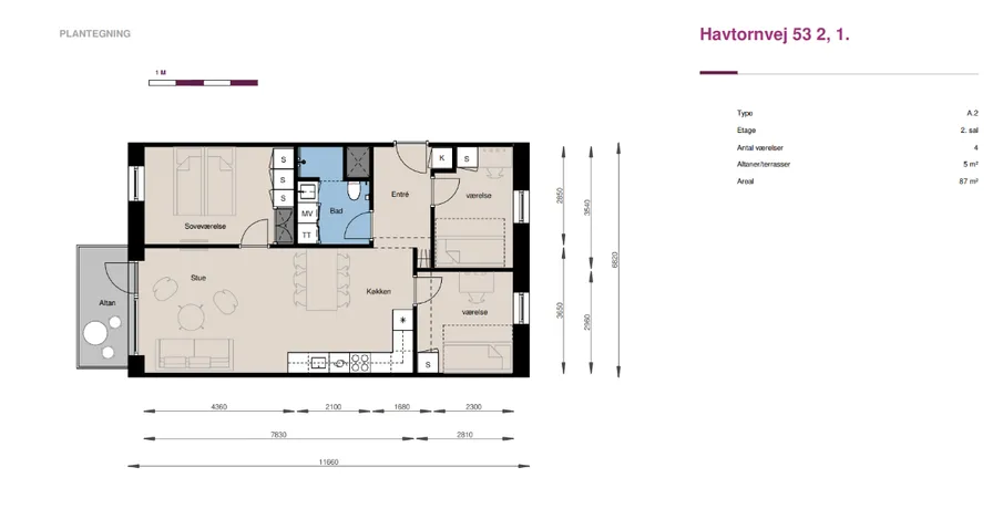 4 værelses lejlighed på 87 m2
