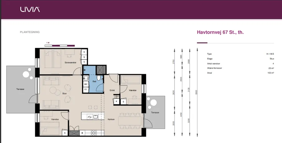 4 værelses lejlighed på 103 m2