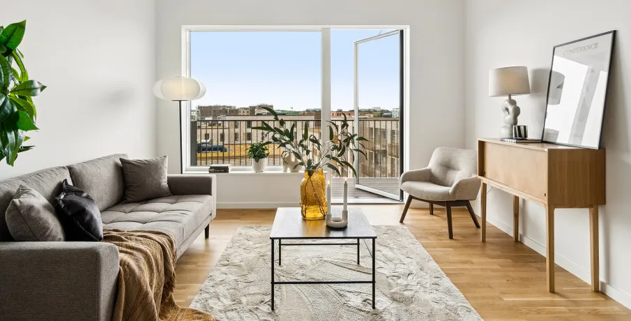 4-værelses lejlighed i Hylden i Hedehusene. Velkommen til Hylden i Hedehusene, rummelige og moderne lejligheder med fokus på komfort og familieliv.. De 4-værelses lejligheder har moderne køkken med hårde hvidevarer, vaskemaskine og flere med tørretumbler. Planløsningen giver god plads til både familieliv og samvær, og flere boliger har altan.. Ejendommen. Hylden er et moderne byggeri med elevator, cykelparkering og grønne fællesområder. Her får du en tryg og rolig hverdag i gode rammer.. Området. Ejendommen ligger centralt i Hedehusene tæt på stationen, hvor lyntoget kører til København på cirka 19 minutter. Området byder på grønne parker, indkøbsmuligheder og flere skoler, herunder Læringshuset, der har et inspirerende læringsmiljø for børn og unge.. Et rummeligt hjem i et familievenligt område tæt på byen.. Billederne i denne annonce kan være fra lignende enheder og er kun til illustration. De repræsenterer stilen og kvaliteten af de tilgængelige enheder og kan variere i opbygning og detaljer.. Møblerne vist på billederne medfølger ikke. De skal give et indtryk af, hvordan rummet kan indrettes, men er ikke inkluderet i lejemålet..