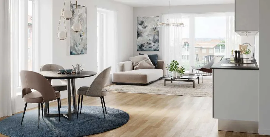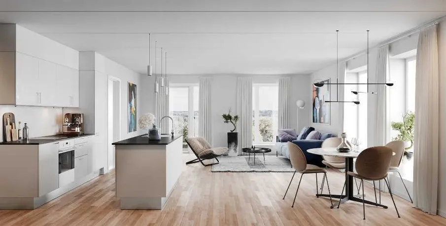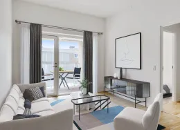FRIMÆRKET består af tre bebyggelser i forskellige højder, som alle mødes i et fælles arkitektonisk udtryk. To bygninger med facader mod Herlev Ringvej og én bygning beliggende væk fra gaden, længere inde på grunden. Lejlighederne fordeler sig forskelligt i husene, fra stueplan til 7. sal – størstedelen med udsigt til det fælles og varierede gårdmiljø. Arkitekturen udstråler en harmonisk bymæssighed ud mod Herlev Ringvej med taktfaste facader i forskellige teglnuancer, og er udformet med varierede fremspring og bygningshøjder i et vertikalt udtryk. Alt sammen med til at understrege indtrykket af flere forskellige og næsten individuelle huse. Desuden vil der være nedgang til gangtunnel under Herlev Ringvej – med opgang lige ved Herlev Bymidte Butikscenter. Jo højere op i husene man kommer op, desto større udsigt ud over området og byen – både til den ene og den anden side. FRIMÆRKETs lejligheder i bebyggelserne langs Herlev Ringvej har alle skønne, østvendte, møblérbare altaner med glasværn mod gårdrummet og villakvarteret bagved – og nogle af stuelejlighederne har flisebelagte terrasser. Alle lejlighederne i FRIMÆRKET har lydisolerende vinduespartier, som desuden har avancerede lydsluser, som gør det muligt at have vinduet på klem og få luft ind i soveværelset udefra på varme dage, og samtidig undgå støj. Der tages forbehold for fejl og evt. lejereguleringer. OBS: Der er 9 mdr. bindingsperiode og 3 mdr. opsigelse. Lejemålet er tidsubegrænset. Billeder er fra prøvebolig.