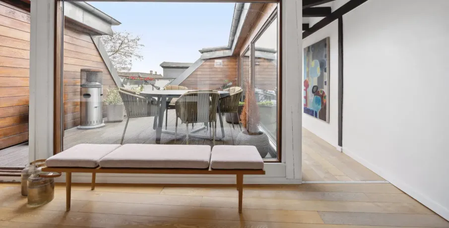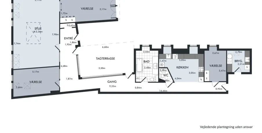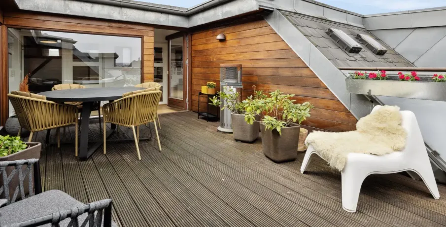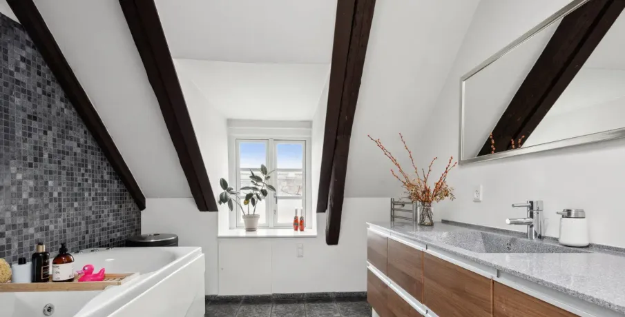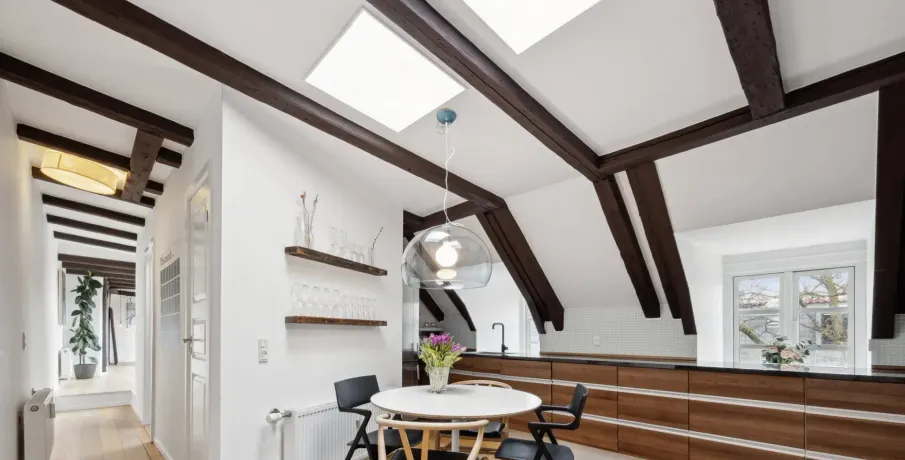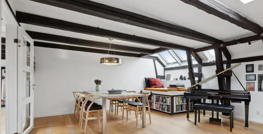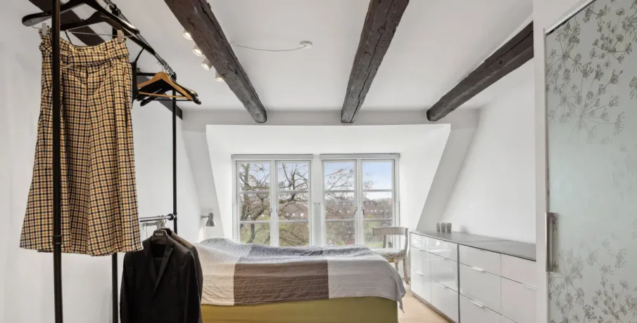På øverste etage i denne ejendom på Åboulevard finder du denne unikke og rummelige tagbolig, som er ombygget fra tidligere loftsrum til en moderne bolig på hele 188 kvm. Her får du en sjælden kombination af plads, lys og privat uderum midt i byen.Lejligheden rummer fire gode værelser og har en veldisponeret planløsning, hvor ovenlysvinduer flere steder i boligen sikrer et behageligt og naturligt lysindfald dagen igennem. De skrå lofter bidrager med karakter og understreger boligens særlige tagboligsudtryk.Stuen er rummelig og indretningsvenlig med plads til både opholds- og spiseafdeling. Køkkenet er placeret separat i den modsatte ende af lejligheden, hvilket giver en klar opdeling mellem ophold og køkken med mulighed for ro i begge zoner.Boligen indeholder ét badeværelse samt et separat gæstetoilet og er velegnet til både familie og par med behov for ekstra plads. Et af boligens absolutte højdepunkter er den store, private tagterrasse, der giver en sjælden mulighed for udeliv i private omgivelser.Derudover medfølger et praktisk bryggers på bagtrappen med vaskemaskine og tørretumbler - en funktionel detalje, der bidrager til en nem hverdag.En rummelig og anderledes tagbolig med god funktionalitet og attraktiv beliggenhed.Lejeperiode: 18-24 måneder
