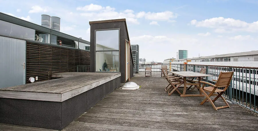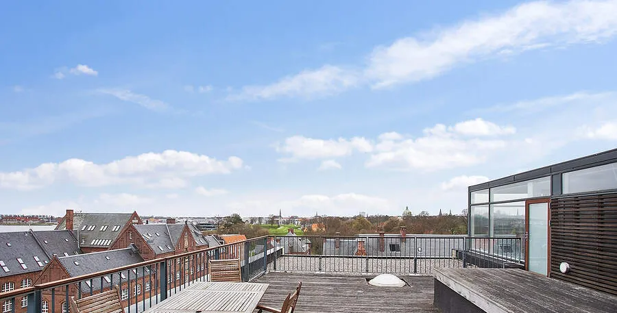 Eksklusiv penthouselejlighed ved Langelinie tilbyder en enestående boligoplevelse i hjertet af København. Med en størrelse på 160 m2 og imponerende 120 m2 privat tagterrasse, der giver en betagende panoramaudsigt over både havnen og byen.. Lejligheden er beliggende i velholdt ejendom fra 1999, og beboerne har bekvem adgang via en elevator, der fører direkte til hoveddøren. Dette sikrer praktisk adgang og en ekstra grad af eksklusivitet. Privat aflukket parkering er til rådighed for beboerne og for dem der ønsker yderligere bekvemmelighed er der mulighed for at leje en parkeringsplads i ejendommens parkeringskælder.. Beliggenheden ved Langelinie tilbyder ikke kun en fantastisk udsigt, men også nærhed til byens livlige atmosfære og kulturelle attraktioner. Den elegange kombination af moderne bekvemmeligheder, privatlivets fred og spektakulær udsigt gør denne penthouselejlighed til et unikt og eftertragtet hjem i København.. Lejligheden har en lys og imponerende panoramstue, der giver en fantastisk udsigt over Havnen, Der er brændeovn og udgang til altan.Lejligheden byder også på stort spisekøkken med alt i hvidevarer, Masterbedroom med garderobe og dir adgang til dejligt badeværelse med bla badekar.. Yderligere 2 gode soveværelser, nok et brusebadeværelse samt bryggers.. En elegant trappe fører op til et glastårn, hvorfra man går ud på den imponerende terrasse. der netop er blevet flisebelagt med eksklusive fliser.. BEMÆRK - LEJLIGHEDEN ER UDEN BOPÆLSPLIGT (man kan ikke tilmeldes folkeregistret) Velegnet til diplomater e.l.. Forbrug betales udover lejen