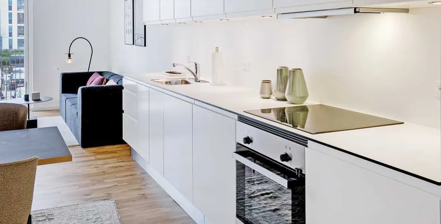 Velkommen til Nadinehus - Lys elegance i forskudte plan Nadinehus er tegnet som en integreret del af det moderne Bellakvarter i Ørestad. Den lyse bygning består af sammenhængende blokke der varierer let i højden for at give hele ejendommen liv og karakter, men de forskudte plan sikrer også optimale lysforhold i alle lejlighederne. Nadinehus omkranser et dejligt grønt gårdrum med afskærmede terrasser og en stor fælles plæne. Det private gårdanlæg kan nås gennem små passager og porte, der giver beboerne nem adgang til grøn afslapning. Når sollyset rammer Nadinehus lyse sten, bliver de reflekteret så hele bygningen lyser op og syner elegant og luksuriøs. Som en særlig detalje er alle altaner lakeret i en farve der matcher bygningens lyse tegl og understreger arkitekturens lethed. De 141 lejelejligheder findes i varierede størrelser for at matche behovet hos store og små familier, eller de som foretrækker singlelivet. Fælles for lejlighederne er det dejlige lys der strømmer ind ad de store, lyse vinduespartier, og tilbyder et fantastisk kig til omgivelserne. Alle lejligheder har en eller flere altaner, privat tagterrasse eller terrasse ved terræn. Den rummelige fornemmelse går igen i alle boliger, med en planløsning der giver åbenhed og kig på langs gennem de store rum. Materialevalget matcher den stringente arkitektur med lyse detaljer og naturlige gulve. Den travle børnefamilie kan samles i et moderne køkken-alrum med god plads til nærvær og hygge. Selv på badeværelserne får man et touch af luksus med rolige, indbydende farver der gør det let at indrette i en moderne stil. Nadinehus er en del af Ørestad; en bydel i byen, hvor alt er tænkt ind: indkøb, caféer, institutioner, rekreative områder og nem adgang til offentlig transport – alt sammen lige uden for døren. Her får du en bolig, der ikke blot er et hjem, men en del af et moderne kvarter med puls, fællesskab og masser af luft omkring dig. Aconto er fastsat ud fra forrige lejers forbrug. Der tages forbehold for fejl og evt. lejereguleringer. Der vil blive indhentet oplysninger hos RKI, og er man registeret hos RKI, vil man ikke kunne leje boligen. OBS: Der er 9 mdr. bindingsperiode og 3 mdr. opsigelse. Lejemålet er tidsubegrænset. Billeder er fra prøvebolig.