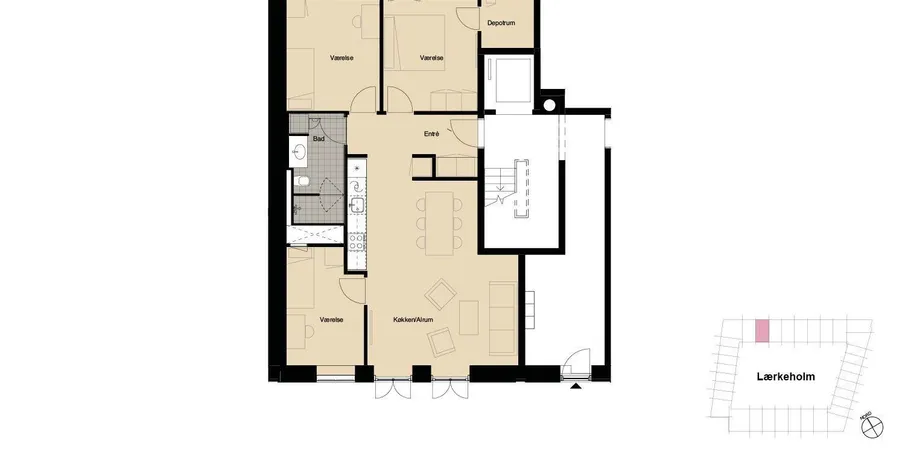 Bo tæt på vandet i Sluseholmen. Sluseholmen giver en moderne stemning med de mange små broer der fordeler ejendommene, samt forbindelserne med bl.a. Teglholmen. Ejendommen indeholder lejligheder fra 2-5 værelser. Her bliver kvadratmeterne udnyttet bedst muligt. Lejlighederne består af lækre detaljer såsom gulve af brede egeplanker, fuldt HTH-køkken og badeværelse. Lærkeholm ligger midt på Sluseholmen. Her er ikke blot kanaler til alle sider; når du bor her, får du en dejlig gårdhave med væksthuse, hvor naboerne kommer hinanden ved, og udgang ud til den hyggelige træmole. Her er både lejligheder og kanalhuse i flere plan – alle med én eller flere altaner.Der er mulighed for leje af p-plads.OBS: Billeder er fra prøvebolig