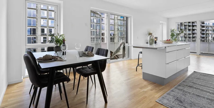 Træd indenfor i Nobelholmens eksklusive boliger, hvor du bliver mødt med den beroligende lyd af bølgeskvulp og gennemgående stilrene kvalitetsmaterialer. Her er der rig mulighed for at finde dit drømmehjem direkte ved vandet. Mellem inderhavnen og kanalen med vand på begge sider finder du Kanalhusets eksklusive lejligheder i både ét og to plan. Her har stueetagens lejligheder alle egen badebro og direkte adgang til vandet, hvorfra du kan dyppe tæerne eller nyde en tur i kajakken i de små hyggelige kanaler, der omgiver Nobelholmen på Enghave Brygge. Karrébygningen er opført i en klassisk u-form med spændende variation i både højde og facade. Det skaber et helt vidunderligt gårdrum, der føles som en grøn oase. Her er åbent til vandet, og kanalernes skønne ø-miljø. Tag elevatoren fra stuen til 8. etage og oplev de elegante lejligheders mange forskellige planløsninger. I boligens hjerte – køkkenalrummet – indbyder det ikoniske Designa køkken til kvalitetstid på alle tider af døgnet. Den hvide bordplade sikrer et roligt udtryk og høj funktionalitet, mens den grå vask giver modspil. Køkkenet er udstyret med alt i Siemens hårde hvidevarer, og er klar til at understøtte dit næste madeventyr. Der er selvfølgelig gulvvarme i alle rum. I værelserne og køkkenalrummet er det Haros slidstærke matlakerede premiumgulv i eg, der skaber et roligt nordisk udtryk. Badeværelserne har simple og elegante elementer fra Designa, med hvide klinker i bruseniche og moderne grå klinker, der skaber en rolig kontrast. I kælderetagen finder du lejlighedernes parkeringsfaciliteter og depotrum. Her er det muligt at leje en parkeringsplads eller parkere din cykel. Der tages forbehold for fejl og evt. lejereguleringer. OBS! Billeder er fra prøvebolig!