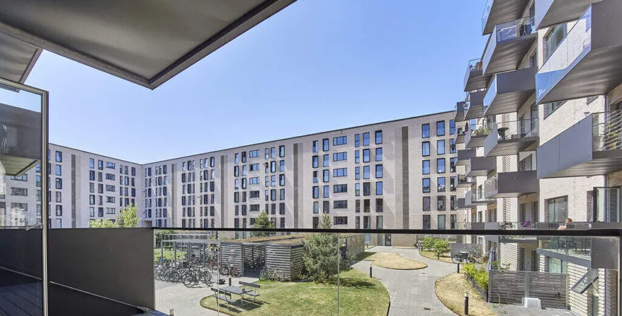 Om boligen. Skøn stor nyere opført 4-værelses lejlighed beliggende i det nye attraktive kvarter i Københavns Havn også kaldet “Teglværksbyen” som ligger i direkte forlængelse af Enghave Brygge og lige overfor Amager Fælled. Overalt i området er vandet let tilgængeligt, og kan bruges det til rekreative formål, som f.eks. kajakroning, lystfiskeri og ikke mindst badning om sommeren. Med tiden etableres der ydermere kanal helt op til ejendommen.. Nærmiljøet byder på et hav af muligheder, men man har faktisk også alle storbyens tilbud i nærheden. Bl.a. via cykelringen, der løber langs kajen omkring hele Københavns Havn, og som bringer dig til Rådhuspladsen på under et kvarter. Metroen åbnet i sommer og Sydhavn S-station ligger kun 900 m fra ejendommen.. Lejligheden indeholder: Rummelig entré med garderobeplads. 3 skønne lyse værelser med indbyggede skabe – det ene også med udgang til altan og andet med fransk altan. Stort badeværelse med bruseniche samt både vaskemaskine og tørretumbler. Fantastisk køkken/alrum med alle hårde hvidevarer, god skabs- og spiseplads, udgang til lejlighedens altan samt åben forbindelse til lejlighedens stue.. Der er elevator i ejendommen, og det er muligt at leje en p-plads i den private parkeringskælder.. Vi har brugt henvisningsbilleder fra en lignenede lejlighed i ejendommen.