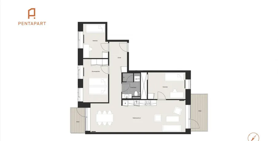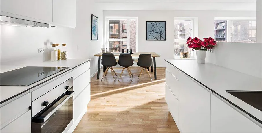Livet i Pentapart, er historien om 71 perfekt indrettede lejelejligheder på attraktive Teglholmen. Her får du det bedste fra to verdener i en hengiven symbiose. Naturens rolige omgivelser i kombination med Københavns pulserende liv.Ejendommen er et frirum flankeret af havnens kanaler og et spirende cafe´- og iværksættermiljø. Den unikke arkitektur og det enestående gårdrum, danner rammer for mange oplevelser og historier. Det er her historierne starter, her de skabes, og her de genfortælles.Du kan læse mere om projektet på , billederne er fra en prøvebolig.