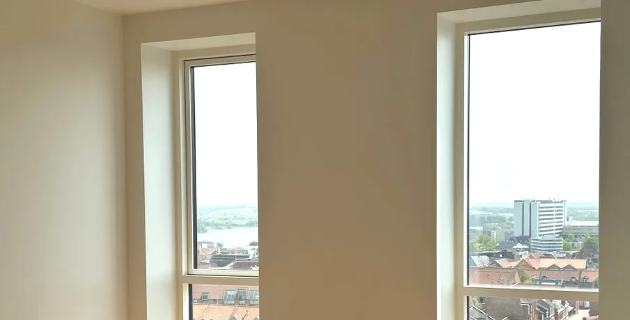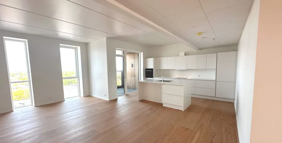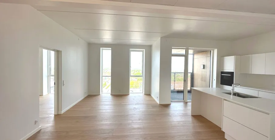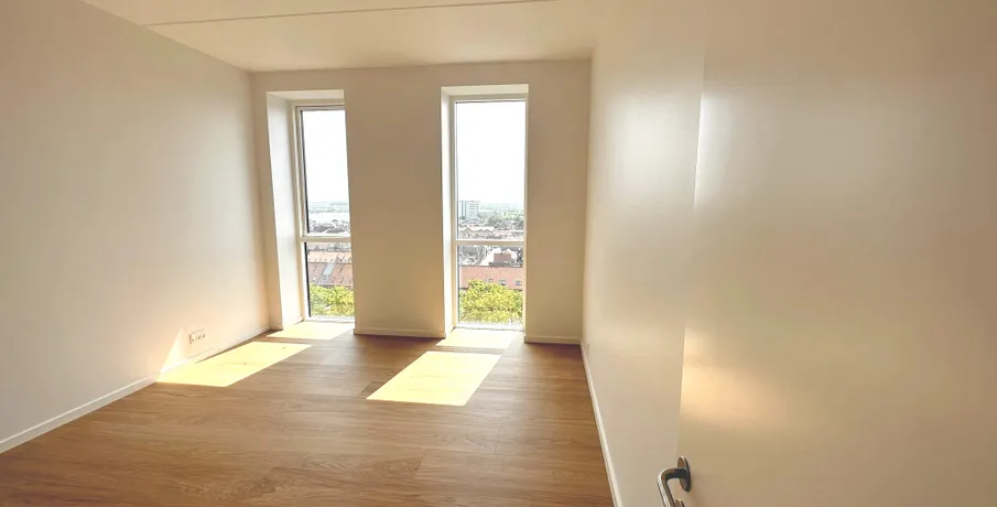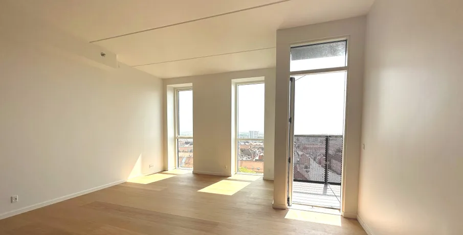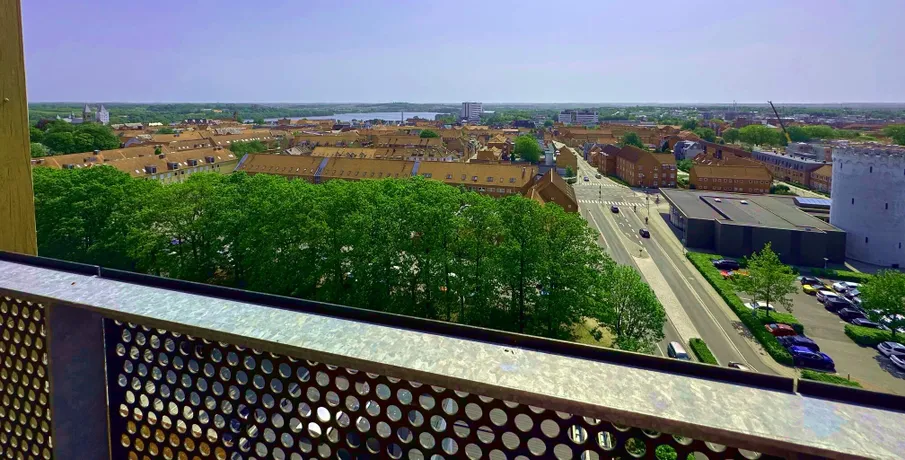 En af de mest eksklusive lejligheder Viborg har at byde på, er nu kommet til leje. Lejligheden som er nyopført, er på hele 203 kvm og indrettet med 4 værelser. Som lejer har du egen indgang ved siden af hotellets hovedindgang, og derfor også privat elevator til lejemålet, der betjenes med kode, og deles med de få andre lejligheder. Der er mulighed for morgenmad i lobbyen samt smagsfulde drinks om aftenen, der eksempelvis kan nydes på den store tagterrasse - med udsigt ud over hele Viborg. Der er kort gåafstand til handlemuligheder, gode restauranter, hyggelige caféer og kulturliv. Du får 180 graders udsigt fra 9. sal ud over Viborg fra lejlighedens to altaner. Så du har byens bedste udsigt over Viborg by fra din bolig. Stuen og køkken/alrummet ligger i forbindelse med hinanden, hvor særligt lysets gennemstrømning gør lejligheden helt fantastisk. Fra både køkken og stue er der udgang til lejlighedens altaner. Lejligheden byder på 3 store værelser med faste skabe, hvor masterbedroom er med eget badeværelse. Endnu et badeværelse, samt et bryggers med vaskemaskine og tørretumbler og plads til opbevaring. Under bygningen finder du en stor parkeringskælder og en parkeringsplads til dig som lejer. Elevator: Ja Husdyr: Ja, med tilladelse Delevenlig: Nej Møbleret: Nej Terrasse: Ja