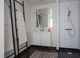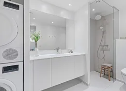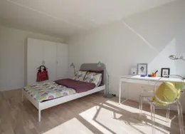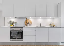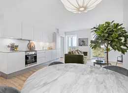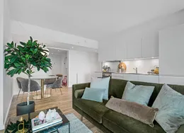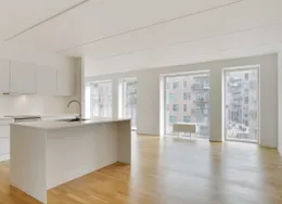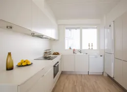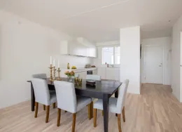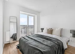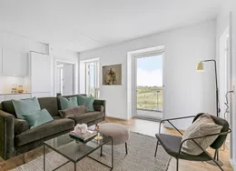 Lejligheden fremstår lys og rummelig og er opført i klassiske og tidssvarende materialer. Stue og køkken ligger i forlængelse af hinanden og skaber et stort åbent rum der giver maksimalt udbytte af det fantastiske lysindfald. Det moderne og praktiske køkken er fra Invita og byder blandt andet på ’svævende’ bordplade med højtrykskomposit, LED-spots og integrerede hvidevarer – alle fra Siemens. Fra gangen har du adgang til det indbydende badeværelse med gulvvarme, formstøbt og integreret marmorvask, væghængt toilet samt vaskemaskine og tørretumbler. Det er muligt at ansøge om husdyrtilladelse i alle vores lejemål. OBS: ønskes der mål af lejligheden skal du selv huske opmålings udstyr til fremvisning, da der ikke er mål på plantegningen.