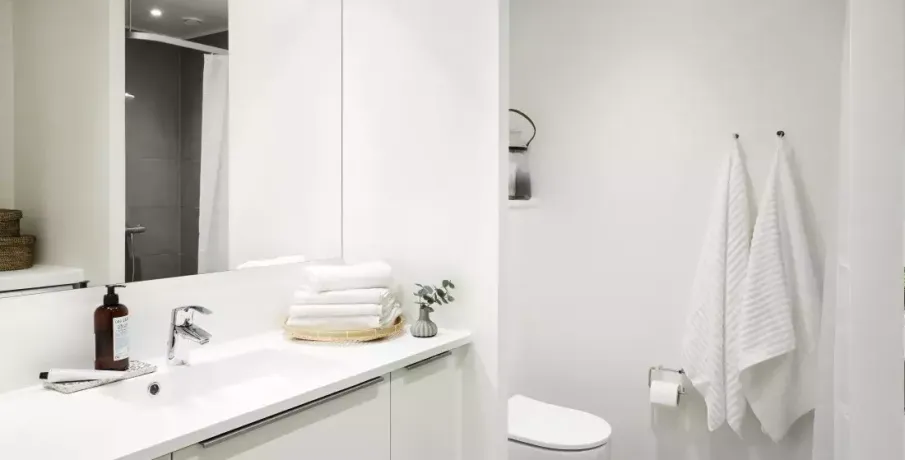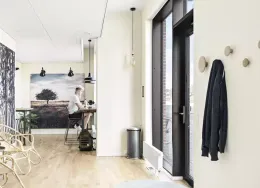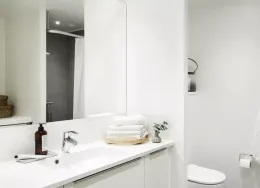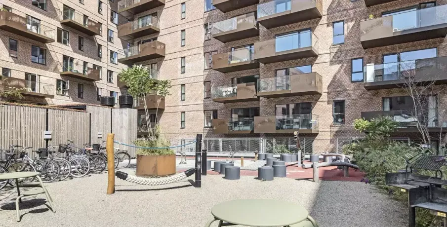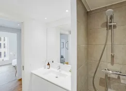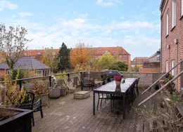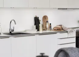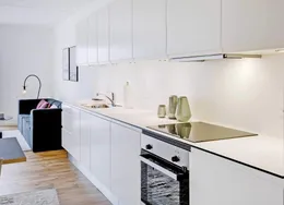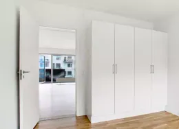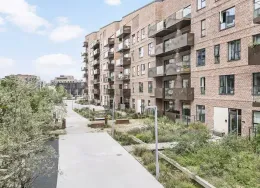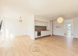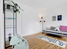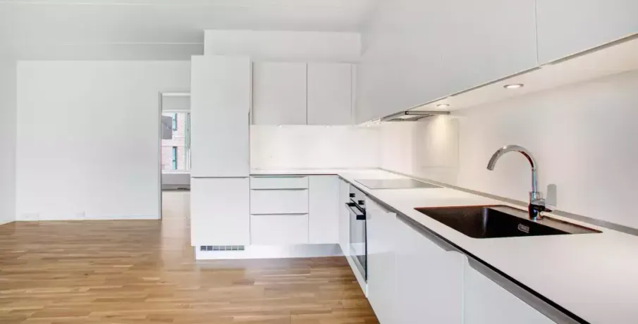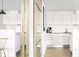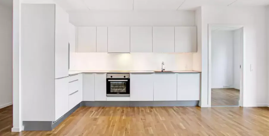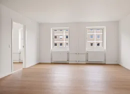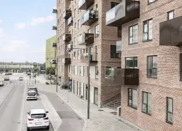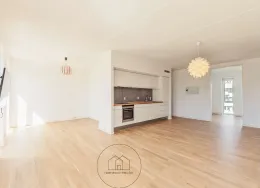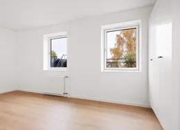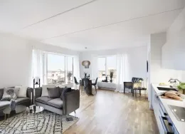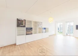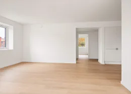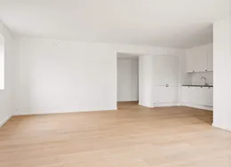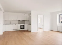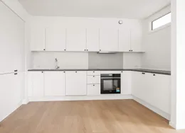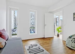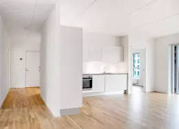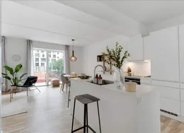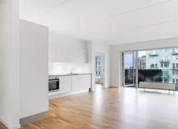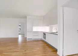 Lejligheden fremstår lys og rummelig og er opført i klassiske og tidssvarende materialer. Stue og køkken ligger i forlængelse af hinanden og skaber et stort åbent rum der giver maksimalt udbytte af det fantastiske lysindfald. Det moderne og praktiske køkken er fra Invita og byder blandt andet på ’svævende’ bordplade med højtrykskomposit, LED-spots og integrerede hvidevarer – alle fra Siemens. Fra gangen har du adgang til det indbydende badeværelse med gulvvarme, formstøbt og integreret marmorvask, væghængt toilet samt vaskemaskine og tørretumbler. Det er muligt at ansøge om husdyrtilladelse i alle vores lejemål. OBS: ønskes der mål af lejligheden skal du selv huske opmålings udstyr til fremvisning, da der ikke er mål på plantegningen.
