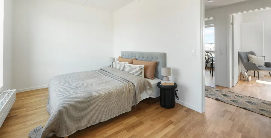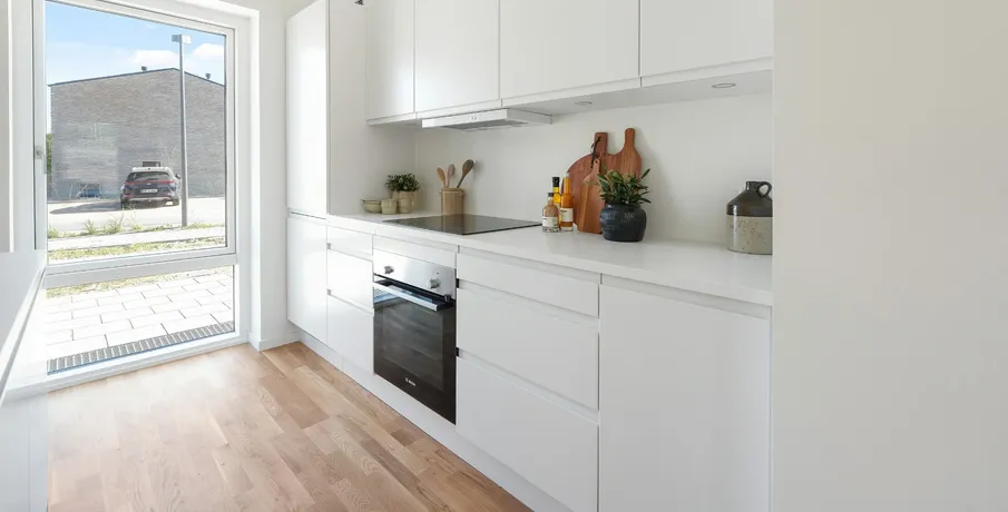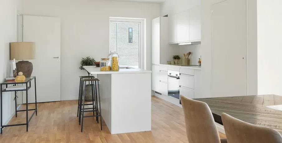 Kom med indenfor i vores nyopførte lejeboliger i Espergærde. Boligerne er ideel til børnefamilien, såvel som seniorerne, der ønsker en hverdag i en moderne lejebolig i naturskønne omgivelser. . Boligerne er opført i lækre lyse og moderne materialer. Alle boliger har rummelige værelser, et skønt køkkenalrum, depotrum samt indbyggede skabe. Yderligere har alle boliger solrig altan eller terrasse.. Følgende inventar medfølger: . - Vaskemaskine. - Tørretumbler. - Opvaskemaskine. - Køle- fryseskab. - Ovn. - Kogeplade. - Emhætte. Det er ikke muligt at leje lejligheden såfremt du er registreret i RKI.. Kontakt Norse Property Management for yderligere informationer eller en fremvisning. . De første boliger stod klar i 2023.. Projektet er opført i god kvalitet med komfort i fokus. Moderne arkitektur og stilfuldt interiør skaber et indbydende og afslappende hjemmemiljø, hvor du kan skabe skønne familieminder. . Rundt om boligen er der optegnet parkeringsbåse, hvilket gør det nemt at parkere bilen når du kommer hjem eller får familie og venner på besøg. . Boligen er beliggende ved Kelleris Hegn i det charmerende Espergærde. Med kort afstand til både skov og strand er der rig mulighed for at nyde naturen og den friske luft.. Der er flere indkøbsmuligheder og institutioner i nærheden, der bidrager til en gnidningsfri hverdag for dig og din familie. .