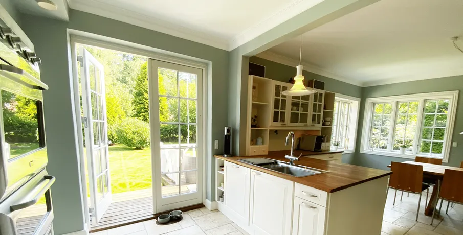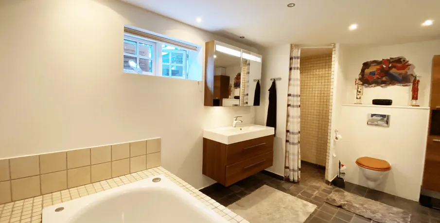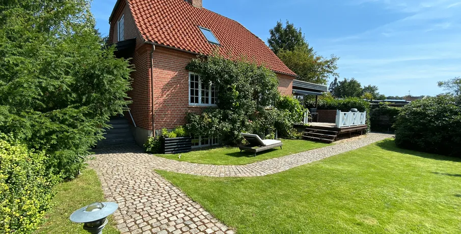 . Velkommen til denne skønne murermester villa på 153 kvm samt 80 kvm kælder – centralt beliggende i Allerød og nabo til skoven. I får en istandsat villa med en åben planløsning – gode værelser både på 1 sal og i underetagen samt en dejlig stor have der er nem at holde. Villaen udlejes fra 1/2-26 – 31/7-26. Boligen indeholder: Entré med flot åben trappe til 1 sal og kælder samt et gæstetoilet. Stort åbent køkken-alrum med viktualierum og udgang til træterrasse og haven, 2 gode stuer en-suite samt yderlige en stor stue/havestue med udgang til terrasse på den ene side og haven samt spabadet på den anden side. 1 salen byder på stort soveværelse med terrasse, et værelse samt et badeværelse med brus. Kælderen giver jer bryggers med vaskefaciliteter, 2 disp. rum – det ene bruges pt til værelse samt et stort rummeligt badeværelse med brus og badekar. Haven på 1.375 kvm. er ordnet til at kræve minimal vedligeholdelse med robot til græsset mens i nyder husets terrasser eller hopper i spabadet. Derudover er der en mindre garage samt et carport og et skur. I kommer til at bo centralt i Allerød med S-toget indenfor 5 min. gang – ligeledes Allerøds hovedgade med butikker, caféer og gode restauranter samt i nærhed til flere supermarkeder. Møbler kan med lejes for en merpris.