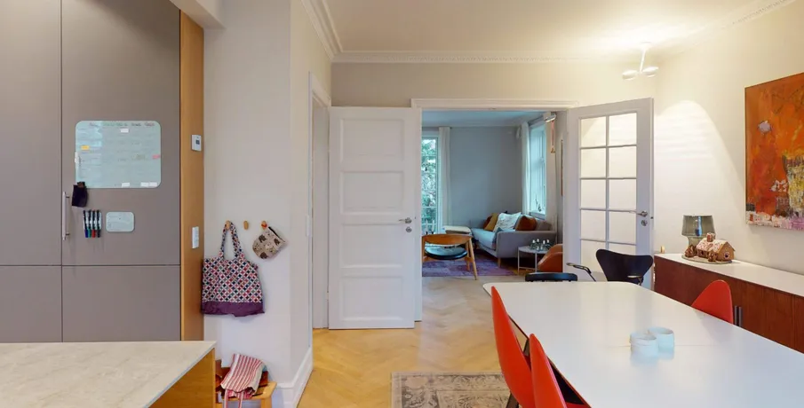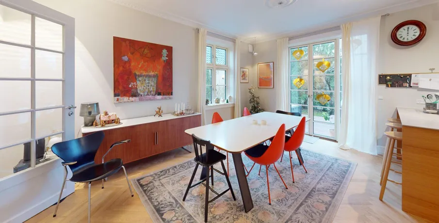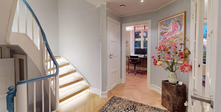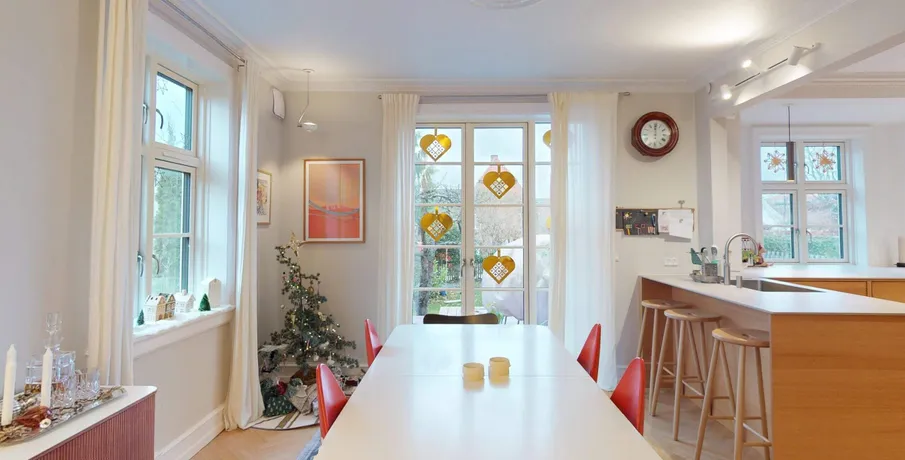 . * Eksklusiv og nyrenoveret villa med klassiske detaljer og moderne komfort *. Velkommen til Milanovej – en enestående ejendom, hvor klassisk elegance møder moderne luksus. Denne smukke villa fremstår fuldstændig istandsat med sans for detaljer, materialer af højeste kvalitet og en atmosfære, der emmer af ro og raffinement.. Kvarteret byder på alt, hvad den moderne familie eller det kvalitetsbevidste par kan ønske sig – gode skoler, daginstitutioner, lokale specialbutikker, caféer og restauranter. Med metroen når du Københavns centrum på under 10 minutter, og lufthavnen ligger ligeledes tæt på, hvilket gør beliggenheden ideel for den rejselystne.. På den eftertragtede vej finder du denne enestående villa, som med sin gennemførte stil, luksuriøse materialer og gennemtænkte planløsning repræsenterer det ypperste inden for moderne boligkunst.. Fra det øjeblik du træder ind i den indbydende hall, fornemmer du straks, at dette er et hjem ud over det sædvanlige. Hallen fremstår med imponerende loftshøjde og en smuk trappe, der elegant forbinder husets etager. Den danner samtidig et naturligt centrum, hvorfra der er adgang til samtlige rum i stueplan.. I stueetagen findes desuden et lyst og inspirerende kontor, perfekt til hjemmearbejdsdage eller som bibliotek, afhængigt af behov.. På førstesalen mødes du af en rolig og indbydende stemning. Her er indrettet tre rummelige soveværelser, hvoraf det ene har sit eget walk-in closet med specialbyggede skabe og opbevaringsløsninger. Etagen rummer desuden et badeværelse i absolut topklasse, udført i eksklusive materialer og med både fritstående badekar og dobbelt brus – et privat spaområde, hvor du kan trække dig tilbage og nyde hverdagsluksus i fred og ro.. På husets øverste etage finder du yderligere to gode værelser, som nemt kan tilpasses efter behov – ideelle som børneværelser, gæsterum eller endnu et kontor. Herfra er der udsigt over kvarterets grønne omgivelser, og den rolige atmosfære gør etagen til et oplagt fristed for både store og små.. Ejendommens kælder byder på en sjælden kombination af funktionalitet og komfort. Her er et stort opholdsrum med mange anvendelsesmuligheder – eksempelvis til fitness, hobby eller hjemmebiograf – samt et rummeligt bryggers og et ekstra toilet. Kælderen fremstår tør, velindrettet og i samme høje standard som resten af huset.. Haven omkring huset på Milanovej er en sand perle. Her får du et grønt åndehul, der både indbyder til afslapning og selskab. De velanlagte terrasser giver mulighed for at nyde solen dagen igennem, mens den frodige beplantning skaber en følelse af ro og privatliv. Og som en ekstra luksus er der gartnerservice inkluderet i prisen, så haven altid fremstår indbydende og velholdt – uden at du skal løfte en finger.. Hele villaen er gennemrenoveret med sans for både funktionalitet og æstetik. De nye sildebensparketgulve, den gennemgående gulvvarme, de nøje udvalgte materialer og den harmoniske farvepalet vidner om et hjem, hvor hver eneste detalje er gennemtænkt. Resultatet er en bolig, der forener moderne luksus med klassisk elegance – et sted, hvor man straks føler sig hjemme.. Her bor du omgivet af smukke, klassiske ejendomme og frodige haver, samtidig med at du har kort afstand til både Amager Strandpark, metroen og Indre By. Den populære Amager Strand ligger blot få minutter væk og giver mulighed for morgendyp, løbeture langs kysten eller hyggelige gåture i solnedgangen..