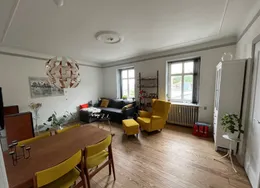 Flot lejlighed i to etager. Lejligheden indeholder entre, køkken, bad + 2 stuer på 1 sal og 4 værelser på 2. sal. Fra stuen er der udgang til stor tagterrasse på 25 m2.Beliggende i centrum af Hobro.