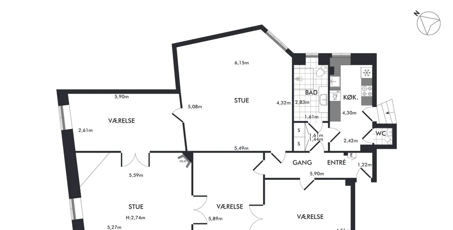 5 værelses lejlighed i København K