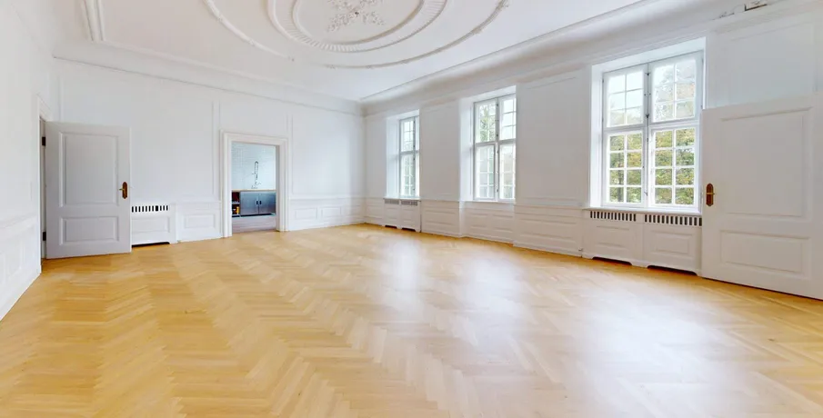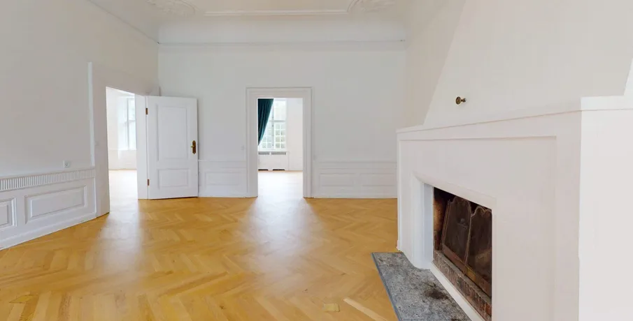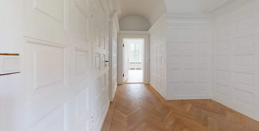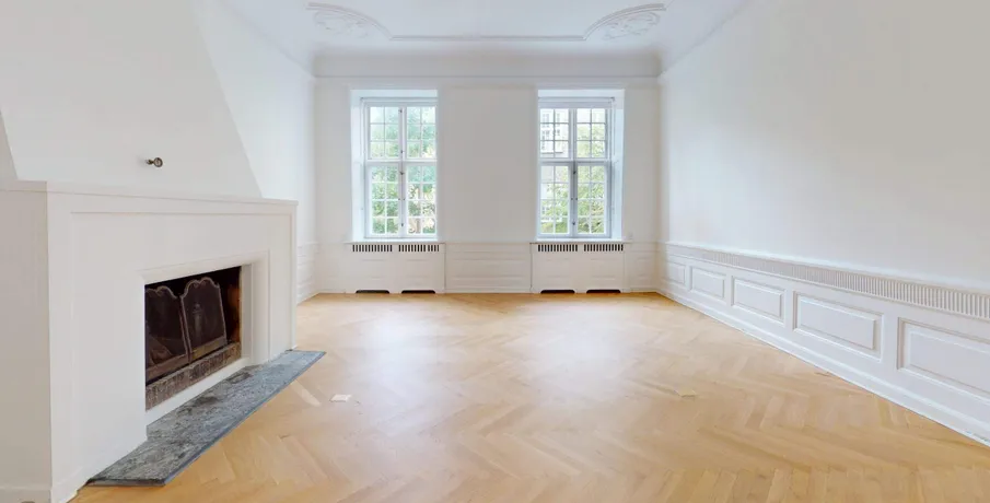 . Velkommen til en af Danmark’s mest unikke lejligheder. På en af Københavns mest eksklusive adresser, Grønningen, udfolder denne enestående bolig sig over hele 455 kvadratmeter – en sjælden kombination af historisk storhed, moderne komfort og en placering i absolut særklasse.. Beliggende på første sal i en ikonisk ejendom, byder boligen på uhindret udsigt over Kastellets grønne områder, mens klassiske arkitektoniske detaljer og generøse rumforhold skaber en stemning af tidløs luksus.. Skyhøje lofter og store gulv-til-loft-vinduer inviterer dagslyset ind i hvert rum og fremhæver boligens imponerende proportioner. Her mærkes en sjælden følelse af volumen og åbenhed, som skaber en rolig og harmonisk atmosfære – en egenskab, man sjældent oplever midt i byen.. Boligen er indrettet med dyb respekt for den originale arkitektur. Sildebensparket i egetræ, indrammede vægpaneler og vidtstrakte stuklofter er smukt bevaret og sætter scenen for et hjem med karakter og sjæl. Samtidig er næsten alt moderniseret med en kompromisløs tilgang til materialer og komfort.. Det elegante køkken er udstyret med højkvalitets Miele-apparater, induktionskogeplade og skræddersyede skabe, mens de håndplukkede fliser og snedkerløsninger gennemgående understreger den eksklusive kvalitet.. Mastersuiten er et privat fristed, hvor hverdagen løftes til det ekstraordinære. Her finder du et stort walk-in-closet, en elegant regnbruser og et fritstående badekar, der tilsammen skaber en stemning af diskret forkælelse og luksus.. Fra hjemmet er der direkte udsigt til Kastellet og det omgivende parkområde – et grønt åndehul i hjertet af byen. Samtidig har du kun få skridt til alt det bedste, København har at byde på: Michelin-restauranter, eksklusive butikker, kunst og kultur i verdensklasse. En adresse, hvor byens puls møder naturens ro.. En original egetræstrappe fører dig op gennem ejendommen og vidner om århundreders håndværkstradition, mens en tidssvarende elevator sikrer nem og elegant adgang til boligen. Bag ejendommen ligger en anlagt gårdhave – en skjult oase med loungeområder og stemningsfuld belysning, perfekt til både afslapning og gæstfrihed.. Hver detalje i denne bolig er nøje udvalgt. Fra materialevalget til det arkitektoniske udtryk emmer hjemmet af raffineret selvtillid, hvor tradition og modernitet balanceres med naturlig lethed. Dette er mere end en bolig – det er en livsstil, hvor skønhed, kvalitet og komfort forenes i usædvanligt format..