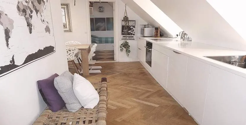 Møbleret luksus penthouse lejlighed roligt og centralt beliggende i eftertragtet kvarter tæt ved havnebassinet og Nyhavn.