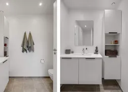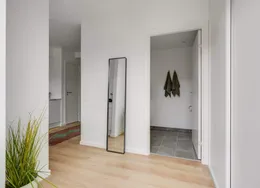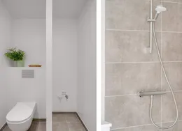 Byhuse med suveræn beliggenhed Avlsgårdsvænget har den store fordel, at beliggenheden både er bynær og omgivet af smuk natur. Der er kun tre kilometer til hjertet af Nyborg med et væld af indkøbsmuligheder, spisesteder og kulturelle oplevelser. For naturelskeren har det samtidig sine åbenlyse fordele at bo omgivet af både strand og skov. Få hunderede meter fra hoveddøren venter den smukke kystlinje og udsigten over Storebælt.Boliger i ét med naturen Alle boliger er moderne indrettet med lyse og lette materialer i en skandinavisk linje, hvor de hvide flader, velvalgte klinker og elegante trægulve skaber rammerne om de enkelte rum. Gulvene er smukt egetræsplank med mat finish og støjdæmpende lyddug. Samtidig er kvadratmeterne udnyttet optimalt, og I vil opleve moderne planløsninger helt uden spildplads. I alle boligerne er køkken-alrummet et naturligt samlingssted, hvorfra der er udgang til et privat og solrigt udendørsareal. Facadernes blødstrøgne mursten med spil i gule og grønlige nuancer vækker minder om skovbryn i efterårsfarver, som i den grad er tro mod de naturskønne omgivelser. Som en passende pendant til facadernes autentiske og bæredygtige materialer er husene forsyn et med smukke, grønne sedumtage, der fletter naturligt ind i området og skaber et frodigt tæppe på toppen af Avlsgårdsvænget. Lejlighederne er udstyret med ventilationsanlæg, der sørger for varmegenvinding, ligesom der er gulvvarme i alle rum med individuelle trådløse rumtermostater, der sikrer et veltempereret og energivenligt indeklima. I hver bolig er der også indbyggede fugtfølere, der automatisk regulerer udsugning efter behov og belastning.Entréen har skydelåger uden indvendig indretning, og der er etableret skabe i værelser. Der er dog ikke skab i soveværelset eller opholdsrummet på 2. sal. Fællesfaciliteter Beboerne på Avlsgårdsvænget får adgang til et stort, flot fælleshus, hvor der er god plads til fejring af mærkedagene med venner og familie, hvis pladsen bliver for trang derhjemme. Fælleshuset opføres som et 120 kvadratmeter stort orangeri i glas og tegl, hvor lyset uhindret kan strømme ind fra alle fire verdenshjørner. Området mellem boligerne får et veludbygget stisystem, der bugter sig mellem de enkelte boligblokke, fælleshuset og det grønne bælte mod skoven og stranden. Missionen er at få et let tilgængeligt og trygt stisystem, der forbinder boligerne med omgivelserne. Området mellem boligerne og fælleshuset beplantes med henblik på at skabe grønne rammer til leg og fællesskab. Fællesarealerne tæller også et velanlagt parkeringsområde, der gør det nemt for beboere med egen bil at parkere tæt på boligen – samtidig med at man har et idyllisk nabolag, hvor børnene trygt kan færdes frit uden gennemkørende trafik.