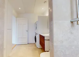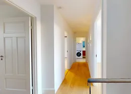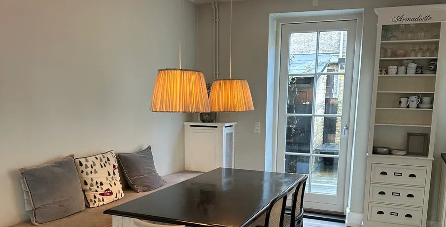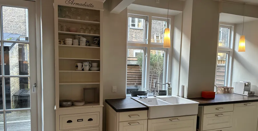 Sjældent udbudt kartoffelrækkehus i særdeles god stand, hvor klassisk charme møder moderne komfort i en af områdets mest attraktive beliggenheder. Boligen udbydes fuldt møbleret og fremstår indflytningsklar med gennemtænkte løsninger og en harmonisk rød tråd gennem alle etager. Husets stueetage byder på et elegant, åbent køkken-alrum i smuk forbindelse med stuen – et naturligt samlingspunkt med plads til både hverdag og gæster. Herudover findes et stilfuldt gæstetoilet samt en indbydende entré med integreret opbevaring og direkte udgang til den private, aflukket gårdhave, som danner en fredelig oase midt i byen. På første sal ligger to velindrettede værelser, hvoraf det ene fungerer som gennemgangsværelse – oplagt som børneværelse, eksklusivt walk-in-closet eller hjemmekontor. Et stort badeværelse i elegant udførelse byder på både bruseniche og badekar. Anden sal rummer to lyse og stemningsfulde soveværelser med smukt lysindfald, mens den udnyttede tagetage tilfører boligen et ekstra rum, ideelt som gæsteværelse, kontor eller kreativt rum. Den rummelige kælder fuldender boligen med et disponibelt rum, velegnet som tv-stue, legerum eller hobbyrum, samt et praktisk vaskerum med vaskemaskine og tørretumbler. En bolig med sjælden karakter, kvalitet i alle detaljer og en helt særlig atmosfære – perfekt for den kræsne køber eller lejer, der ønsker noget ud over det sædvanlige. . Huset udlejes fuldt møbleret og kun til Expats. Forbrrug er ikke inkluderet i lejen