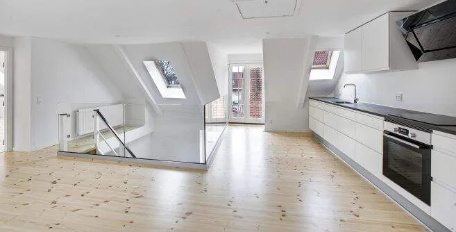 . Stor spændende lejlighed i 2 plan, hvor man får mange kvm får pengene. Der er indgang til lejligheden via hyggeligt gårdmiljø. Lejligheden er beliggende på 1. og 2. sal. Entré og hele 2. salen er netop blevet helt ombygget og totalistandsat med bl.a. nyt køkken og nye gulve.. Parkering: Det kan er mulighed for parkering 25 meter fra boligen på privat P-plads. Entré:. Nyistandsat entréområde, hvor, hvor der er åbnet helt op til 2. sal. En skøn indgang til din bolig.. 1.sal.:. - To store værelser. - Badeværelse med nyt linoleumsgulv. - Stort bryggers med bordplade og ny vaskemaskine og ny tørretumbler. - to mindre rum, som kan være egnet til både opbevaring, viktualierum eller walkin closet. På 2.sal er der højt til loftet. Den lave pris på boligen skyldes, at der på 1.salen er lavt til lavere til loftet i nogle af rummene. Så her får man mange kvm får pengene.. 2.sal.:. - utroligt dejlig lys med mange ovenlysvinduer (Velux). - er helt ny fra Invita og med alt i hårde hvidevarer inkl. opvaskemaskine, køle-/fryseskab, stilfuld emhætte, induktion, ovn, emhætte. Nye plankegulve med mat lak. - nye lakerede plankegulve. På 2.sal er der højt til loftet.. Boligen er beliggende i hjertet af Varde og tæt ved indkøb, Torvet, butikker og skønne Varde Garten. Boligen har egen privat stor tagterrasse.. Ejendommen:. -Fælles gårdmiljø. -Ny teglstensbelægning med brændte tegl fra Vangsø, som er af den samme høje kvalitet som belægningen i VARDE GARTEN. -Nyopført aflåst cykelskur. -Nye døre. Kontakt os for en fremvisning. Lejevilkår:. - 3 måneders depositum. - Ubegrænset lejeperiode. - Lejemålet er uopsigeligt de første 12 måneder. Herefter kan lejemålet opsiges med 3 måneders varsel. - Husdyrhold er ikke tilladt, men der kan i nogle tilfælde gøres undtagelser. - Lejer tilmelder sig som aftager af EL på adressen. - Varme og vand betales á conto af lejer. Energimærke B.