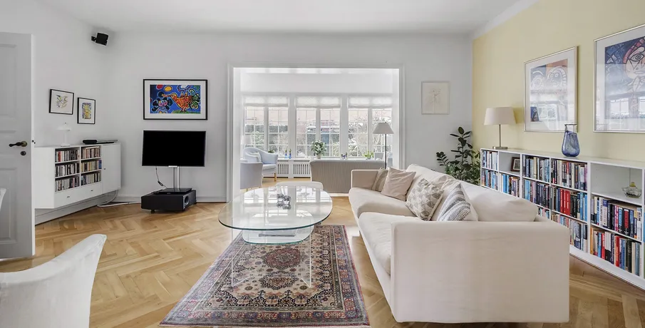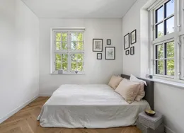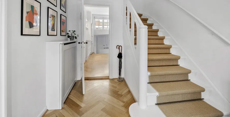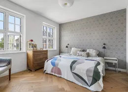 Huset er på hele 227 etagemeter fordelt over husets fire plan og står i en flot og meget velholdt stand. Med en yderst attraktiv beliggenhed på Sundvænget centralt i Hellerup er dette en yderst sjælden mulighed på lejemarkedet. . Man ankommer til husets sydvendte forhave der er fuldt ud afskærmet mod vejen. Haven er nydelig og nem at holde - og der er ved husets facade indrettet en mindre terrasse med markise. Herfra er videre adgang til husets entre. . I husets entre bliver man straks mødt af de flotte håndlavede detaljer i træværket på både trappeløb, garderobeskabe, sildebensparket mv.. Huset er renoveret med respekt for de originale detaljer og står i flot og indflytningsklar stand. I entre er indbyggede skabe til overtøj og videre adgang til husets stuerum.. Der forefindes i alt tre stuerum i forlængelse af hinanden, hvor de to er i åben forbindelse. Opholdsstuen er åben forbindelse med udestuen, som er fuldt ud indrettet til hverdagsbrug. Herfra er direkte udgang til forhaven og et flot udsyn af de sprossede vinduespartier. Spisestuen kan separeres fra opholdsstuen, er i en god størrelse og har vinduespartier mod husets gårdhave og indbyggede reoler på hele endevæggen. . Husets køkken fremstår flot og velholdt og er udstyret med alle nødvendige hårde hvidevarer. Køkkenet er indrettet i to niveauer og er er indrettet med et mindre spiseområde og rigeligt med bordplads. Fra det nedre plan af køkkenet direkte udgang til en flot og meget privat brolagt gårdhave med hyggelig beplantning. Der er fra husets gårdhave separat indgang til huset, med en mindre entre med plads til overtøj mv.. Her er også indrettet et gæstebadeværelse med toilet og separat bruseniche. Der er fra stueplan adgang til husets kælder der er udnyttet til opbevaring og hvor der også er indrettet vaskefaciliteter. . Husets 1. sal er udført med hele tre soveværelser i varierende størrelser. Der er fra det ene værelse sydvendt fransk altan mod forhaven, hvor man kan strække sig ud og nyde synet mod vandet. Alle værelserne er i en god og anvendelig størrelse og udført med skabe og opbevaringsplads. Husets primære badeværelse er ligeledes indrettet på 1. salen og er udført med kombineret karbad og bruser. . Husets 2. sal er renoveret og fuldt udnyttet. Her er hele 39 m2 der ikke er en del af det annoncerede areal (BBR). 2. salen er indrettet med et stort værelse samt en mindre rum til opbevaring. Det primære værelse er udført med loft til kip og skrå vinduer på begge sider af værelset, der giver et godt naturligt lysindfald. Her er utroligt hyggeligt og mange muligheder for anvendelse og udnyttelse. . Som beboer på Sundvænget har man delt brugsret til en privat strandgrund for enden af vejen, hvor der både er etableret badebro, legeplads, fodboldbane mv.. Der er et hyggeligt og socialt fællesskab på vejen, som man som lejer kan vælge til og fra som man ønsker. Det er et børnevenligt område og meget brugt af vejens beboere. . Huset udlejes umøbleret for en periode på 24-36 måneder. Udlejes ikke som delebolig. Forbrugsudgifter er ikke inklusiv i huslejen.