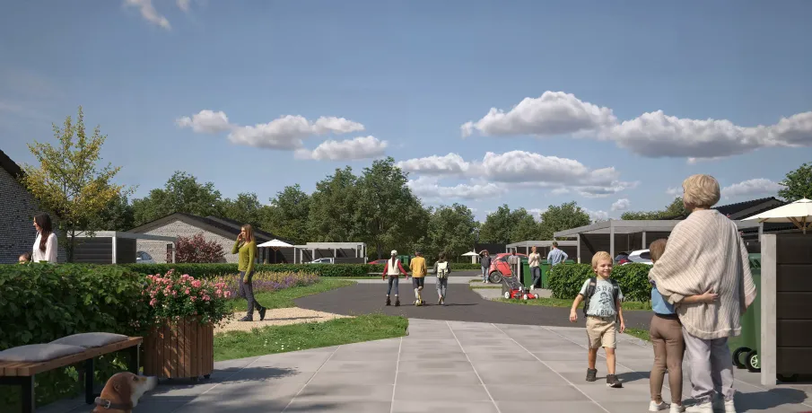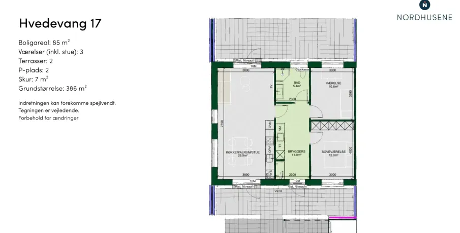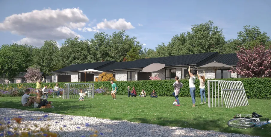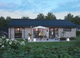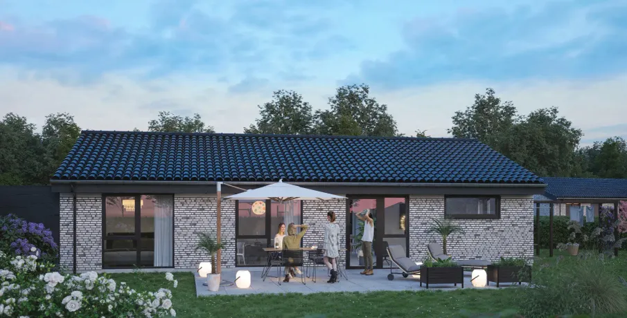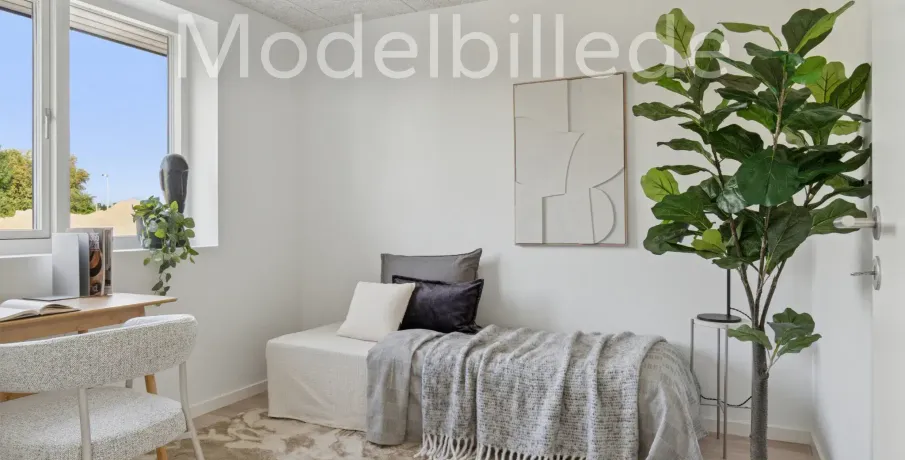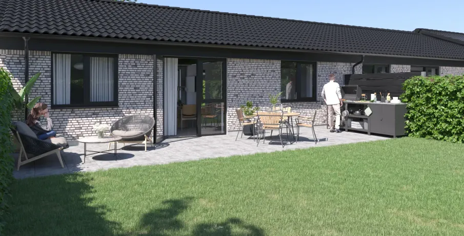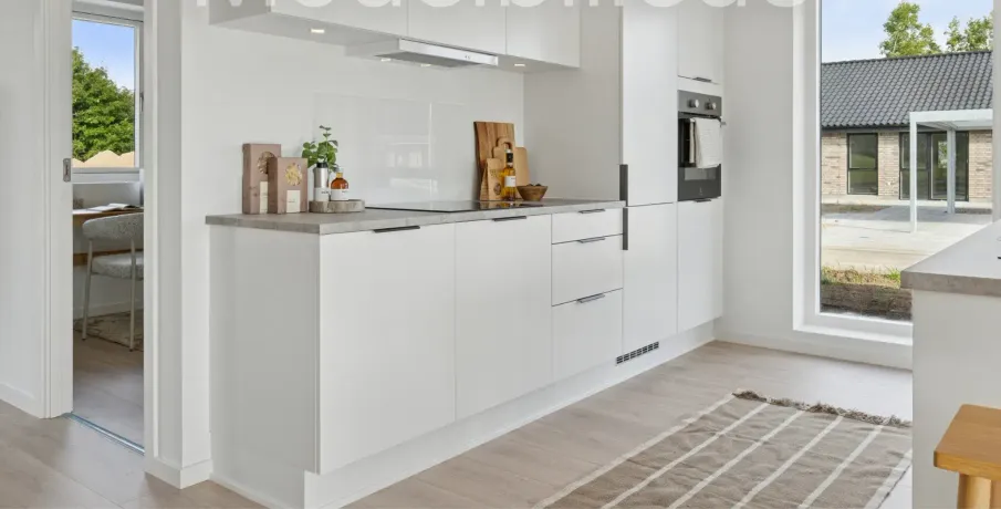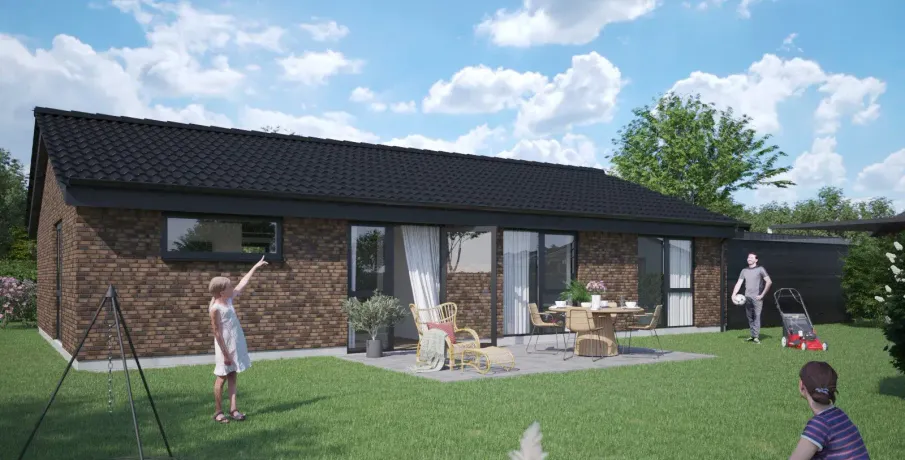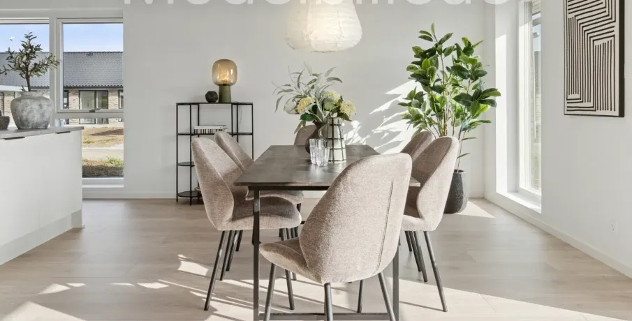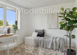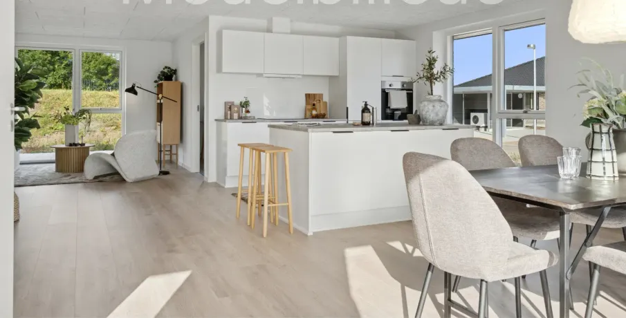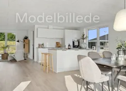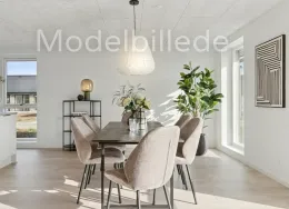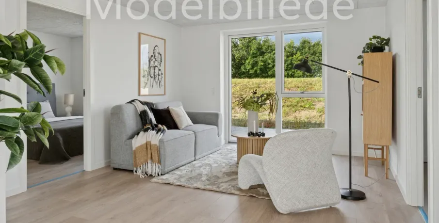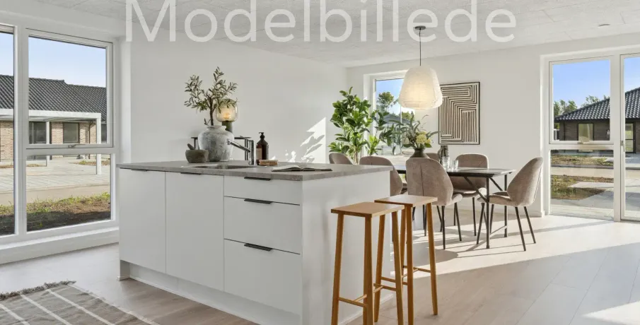 Et lyst og moderne hjem med plads til hverdagenModerne og velindrettet bolig, hvor funktionalitet og atmosfære går hånd i hånd. Her får du et hjem, der kombinerer moderne løsninger med varme og hjemlighed – perfekt til både familieliv og afslapning.BoligenKøkken/alrum og stue udgør boligens naturlige samlingspunkt. Det åbne rum skaber plads til både madlavning, måltider og hyggelige aftener i sofaen, mens de store vinduespartier sørger for et skønt lysindfald og en flydende overgang til udelivet.Boligen rummer i alt tre værelser – her er dermed plads til både forældre, børn, kontor eller gæsteværelse. Badeværelset er moderne indrettet, og bryggerset giver dig masser af praktiske opbevaringsmuligheder – en sjælden luksus i boliger af denne størrelse.Uderum og rammerMed to solrige terrasser er der mulighed for at nyde udelivet hele dagen – uanset om du er til morgenkaffe i solen eller grillmad i aftenskæret. Derudover hører der to parkeringspladser og et skur til boligen.Grunden giver en behagelig ramme om boligen og plads til både haveprojekter og leg.