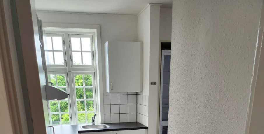 Lejligheden byder på 57 veludnyttede kvadratmeter med en rummelig stue, hvor de store vinduespartier sikrer et fantastisk lysindfald og en behagelig atmosfære. Her er god plads til både sofaarrangement og spisebord. Soveværelset er lyst og indbydende med plads til både seng og opbevaring.. Køkkenet fremstår lyst og funktionelt med gode skabs- og bordpladsforhold – perfekt til både hverdagsmad og hyggelige middage. Badeværelset er enkelt og praktisk indrettet med separat bruseniche.. Lejligheden har flotte trægulve, lyse vægge og en klassisk stil, der gør det nemt at sætte sit eget præg. Planløsningen er optimal til både singlen, parret eller den studerende, der ønsker en central og hyggelig base i Horsens.. Ejendommen fremstår velholdt og ligger i rolige omgivelser med grønne arealer. Samtidig er du tæt på indkøb, offentlig transport og Horsens midtby.. Koldtvandsforbrug er inkluderet i huslejen.