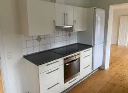 Hyggelig indflytnings klar 3 vær. 1. sals lejlighed med: Entre, køkken, stue, badeværelse, værelse og soveværelse, stor lukket fælles have,. Tæt på indkøbs muligheder og diverse skoler/ børnehave/vuggestue samt naturområdet langs Odense Ådal.. Der kan installeres opvaskemaskine i lejemålet.. Ejendommen blev totalmoderniseret i 2008 - fælles vaskefaciliteter i baghus. . Book en fremvisning:-)